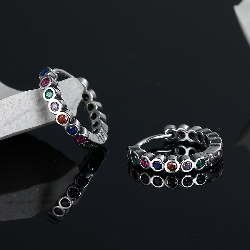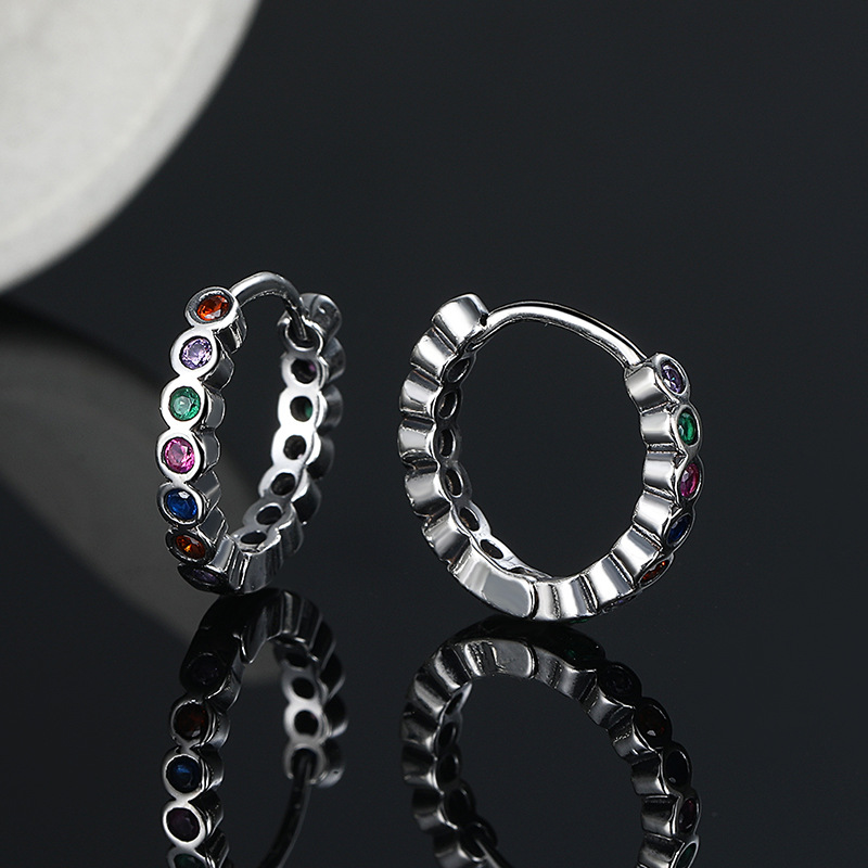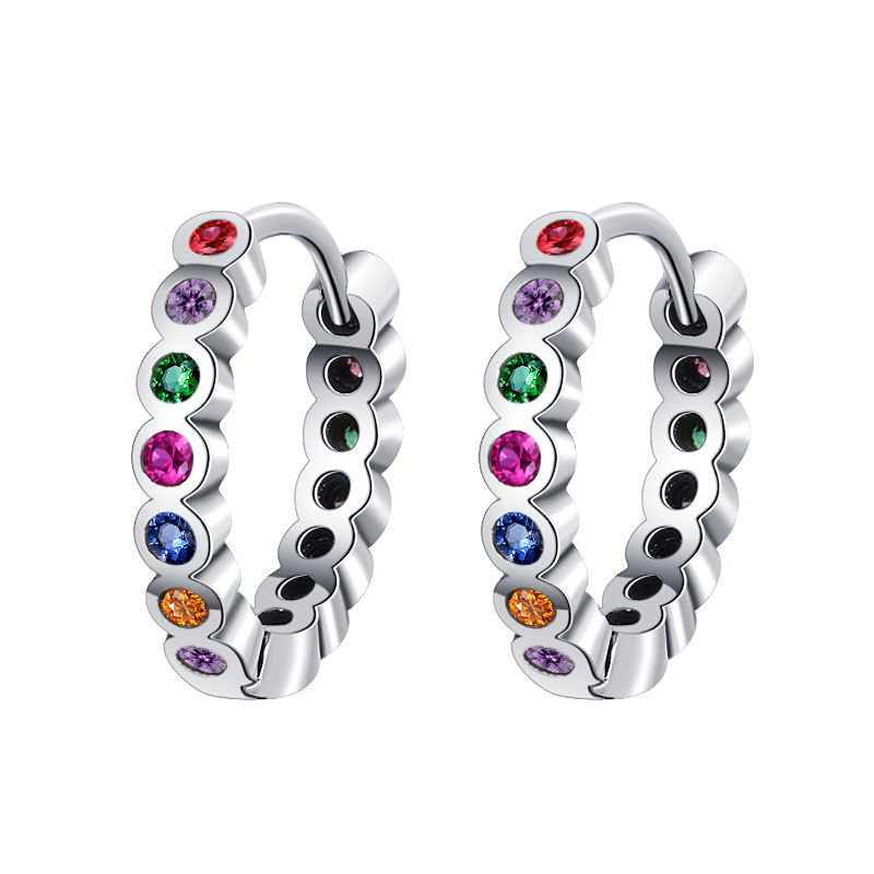 925 Sterling Silver Colorful Zirconia Vintage Hoop Earring 60200047
