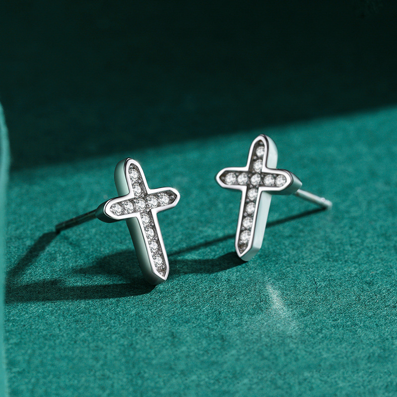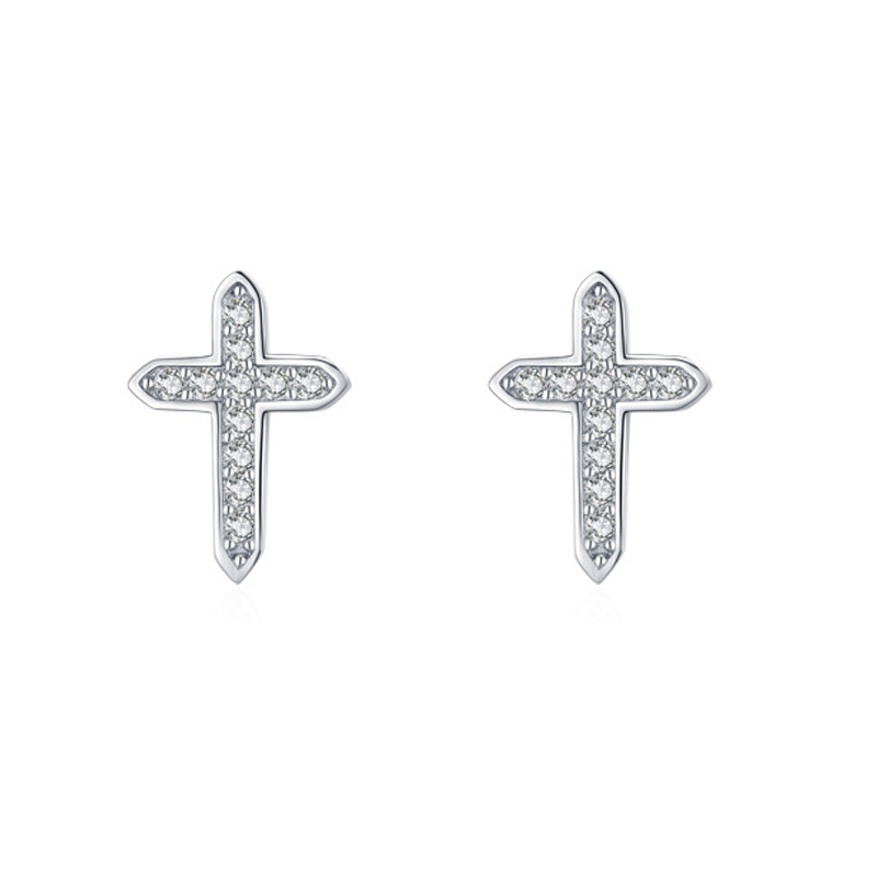 925 Sterling Silver Cross CZ Stud Earring 40200691