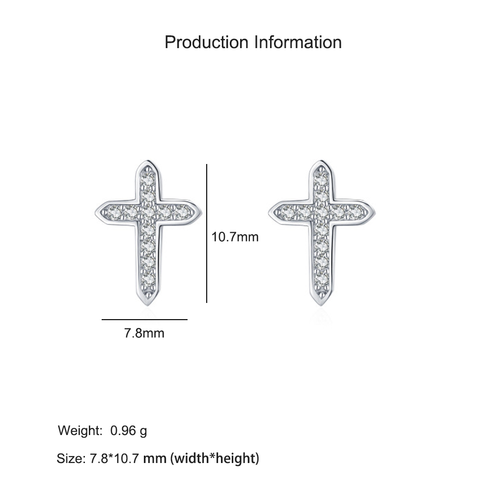 925 Sterling Silver Cross CZ Stud Earring 40200691 - image1925 Sterling Silver Cross CZ Stud Earring 40200691 - image2
