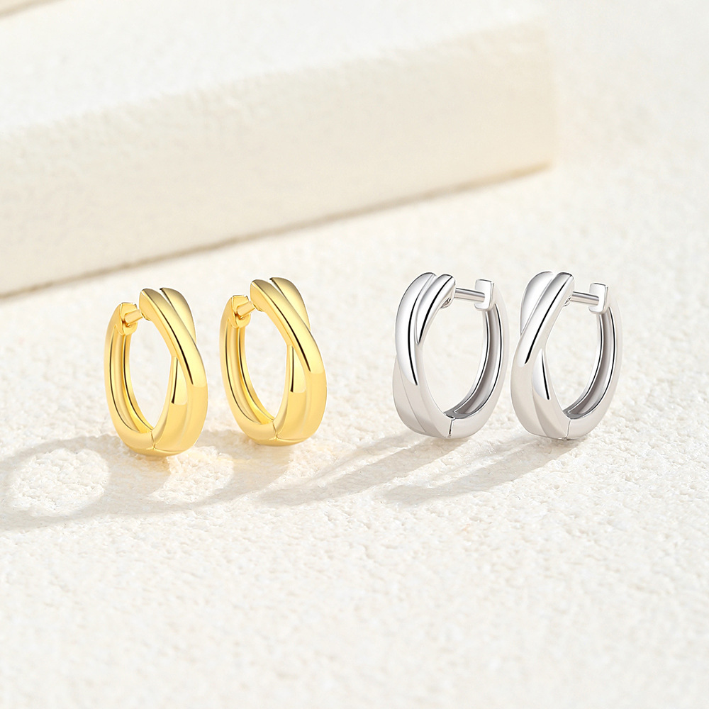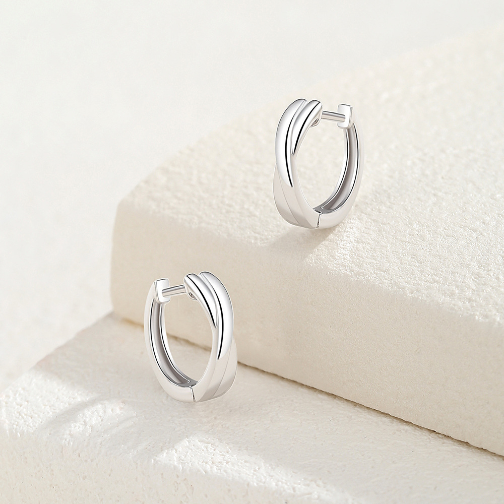 925 Sterling Silver Cross Lines Hoop Earring 60200267