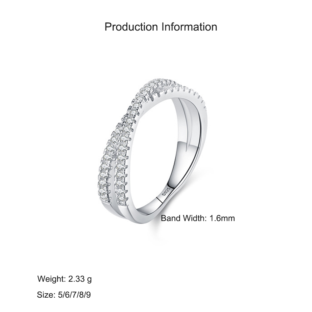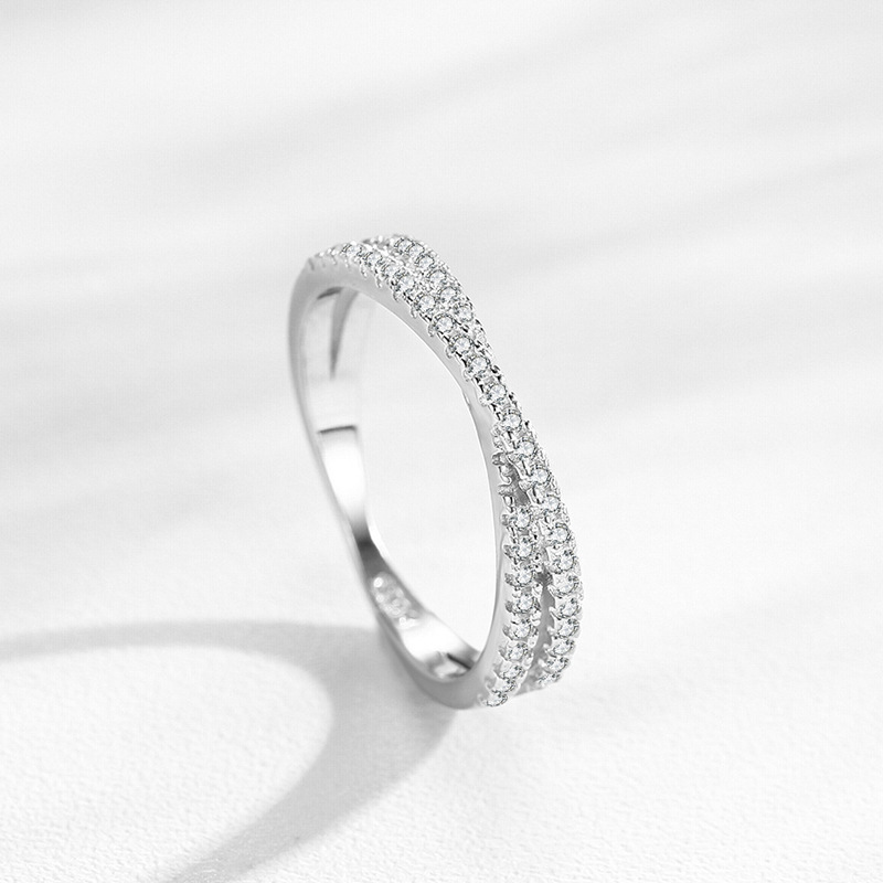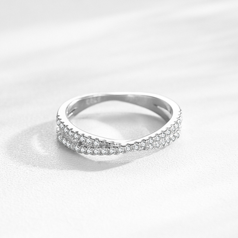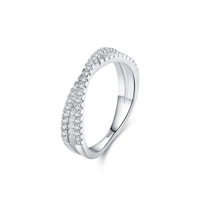 925 Sterling Silver Crossover Micro Pave Zircon Ring 70100571