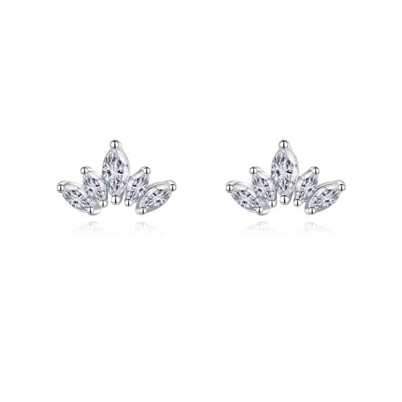 These wholesale 925 sterling silver earrings feature a chic crown-shaped cluster of marquise-cut zircon stones, combining modern simplicity with timeless glamour. Ideal for jewelry retailers and online stores seeking popular, high-quality pieces that appeal to a wide audience. Perfect for bridal collections, daily jewelry lines, or elegant gift sets.