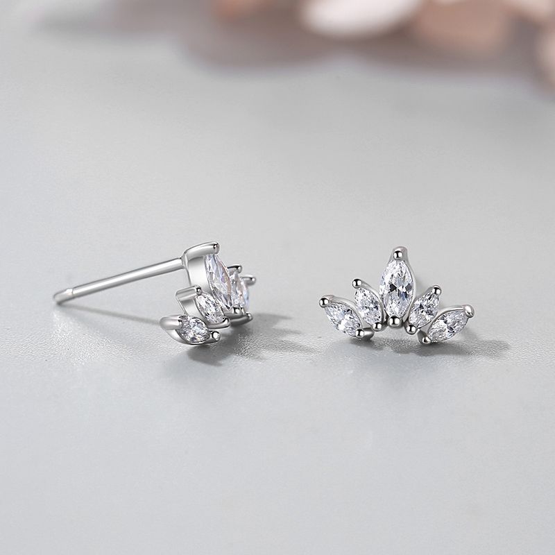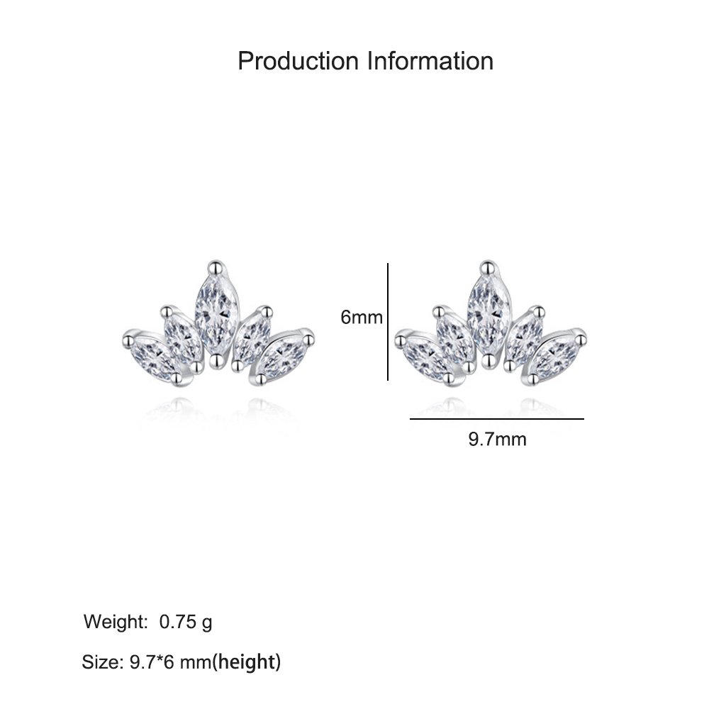Radiating refined sparkle, these 925 sterling silver earrings feature a delicate crown-inspired design with marquise-cut zircon stones. Each stone is precisely set to create a graceful shape that shines from every angle. Lightweight and versatile, these studs elevate any outfit — perfect for both daily wear and special occasions, offering a timeless touch of royalty and sophistication.