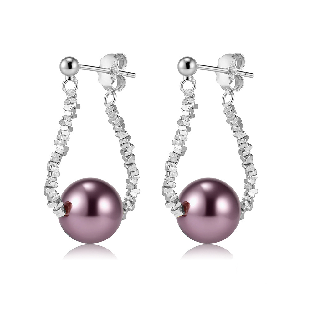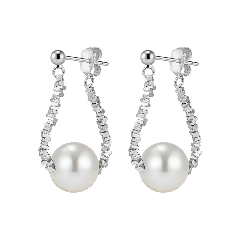 925 Sterling Silver Crushed Silver Bead Shell Pearl Drop Stud Earrings 40500077