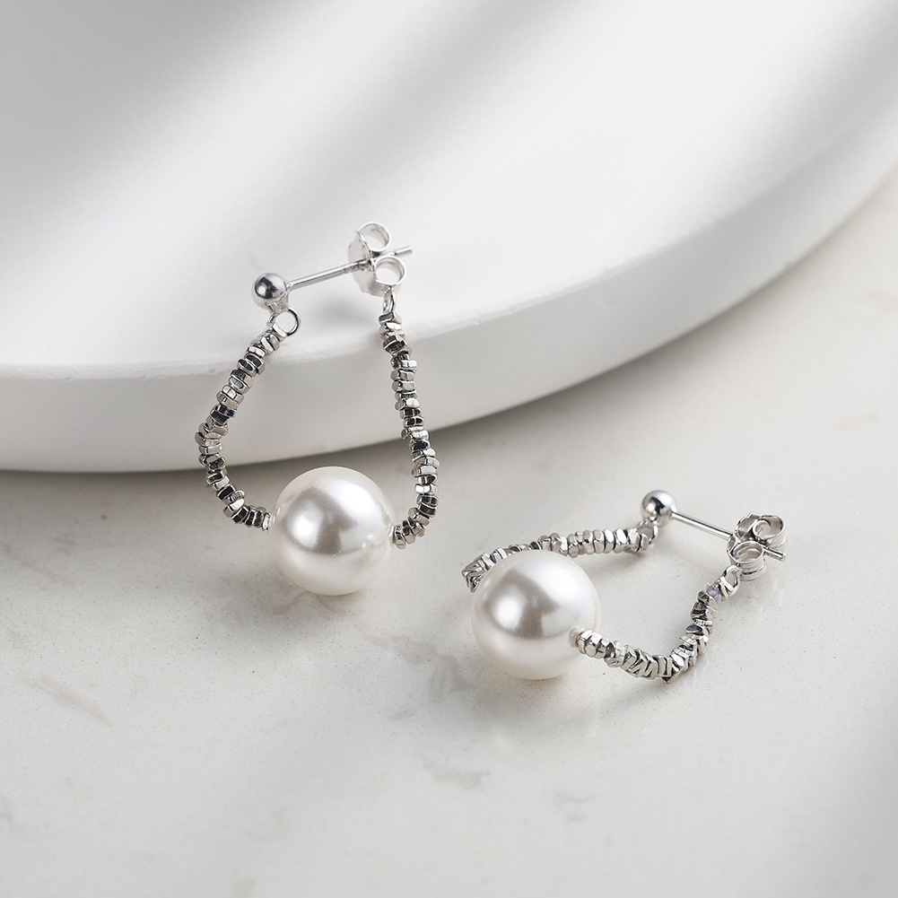 Update your inventory with the viral "Crushed Silver" aesthetic using our 925 Sterling Silver Crushed Silver Bead Shell Pearl Drop Earrings. This SKU capitalizes on the "Crushed Silver/Silver Nugget" trend, known for its high-refraction, diamond-cut appearance without stones. The design anchors this textured metal work with a high-quality Shell Pearl, ensuring a premium, weighted feel. Manufactured from solid S925 sterling silver, these earrings are hypoallergenic and highly durable. A fantastic high-margin item that bridges the gap between modern art jewelry and classic pearl staples.