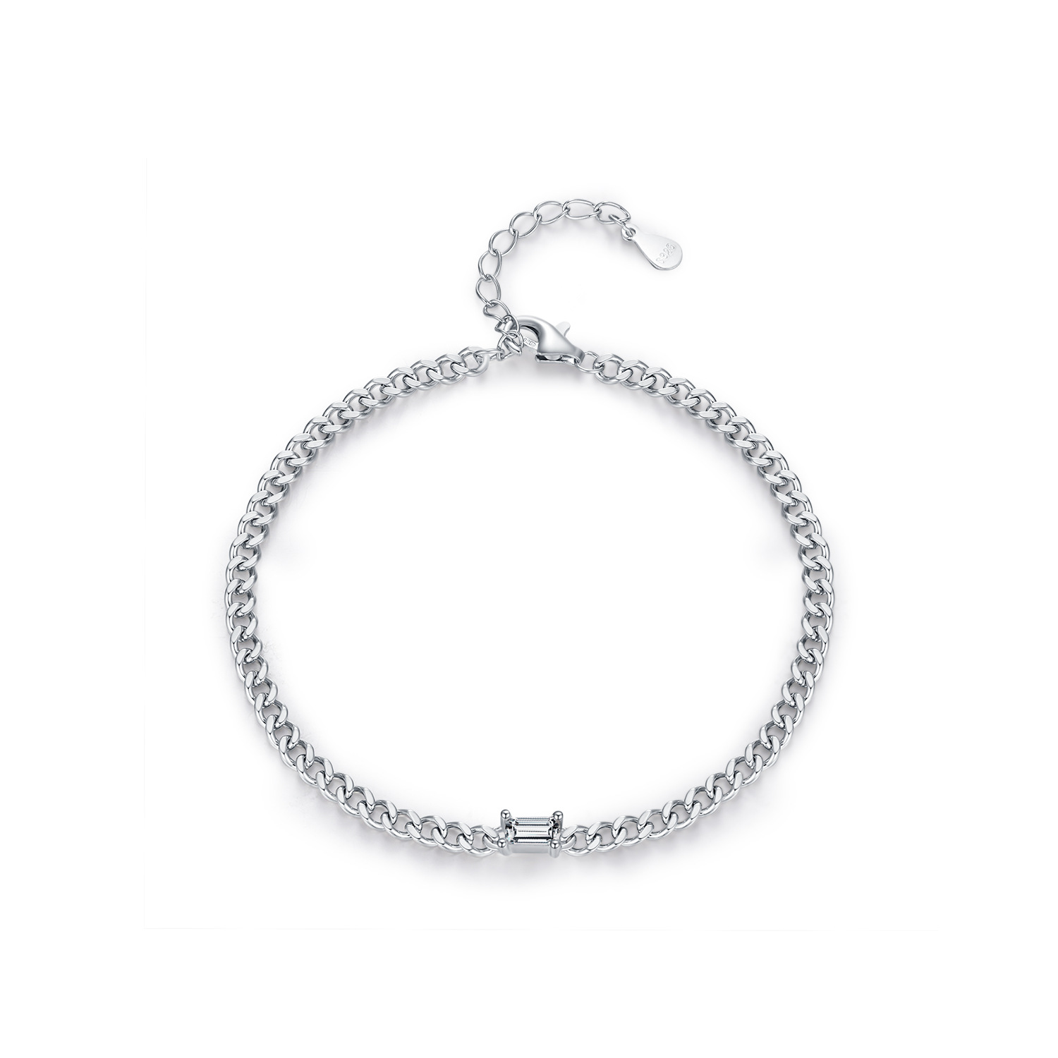 This sleek 925 sterling silver bracelet combines a classic curb chain with a subtle baguette-cut cubic zirconia accent for a refined, modern touch. Its clean lines and polished finish make it perfect for both men and women seeking a minimalist statement. Durable yet stylish, it’s ideal for layering or wearing solo to elevate any casual or formal outfit. Adjustable length ensures a comfortable fit for daily wear.