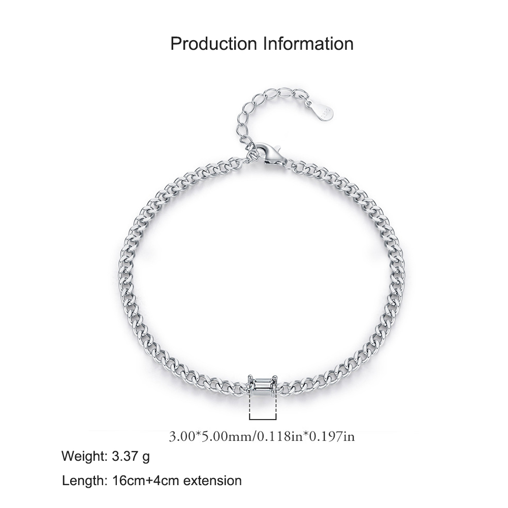 925 Sterling Silver Curb Chain Baguette CZ Bracelet 100100199