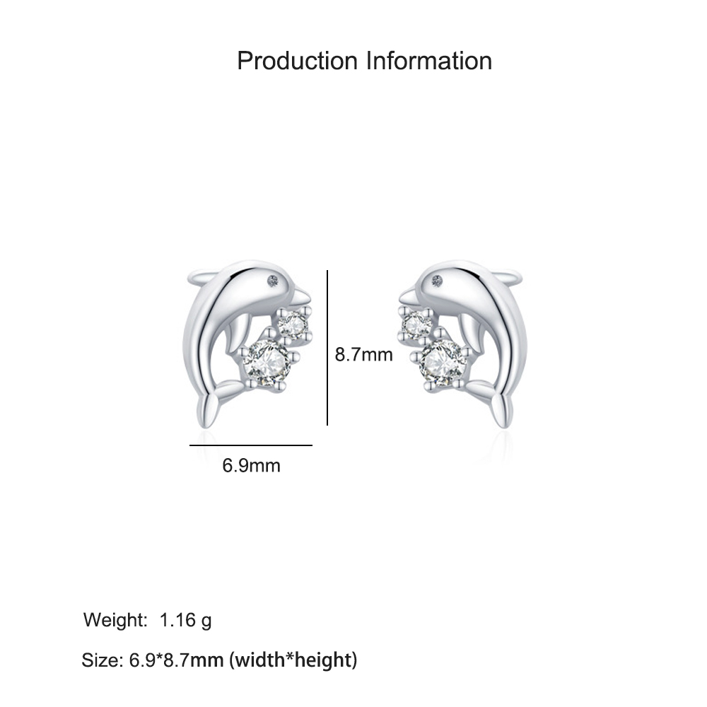 925 Sterling Silver Cute Animal Dolphin Stud Earring 40200671 - image1925 Sterling Silver Cute Animal Dolphin Stud Earring 40200671 - image2