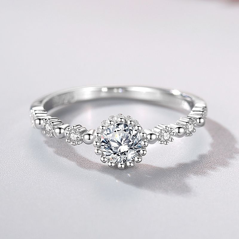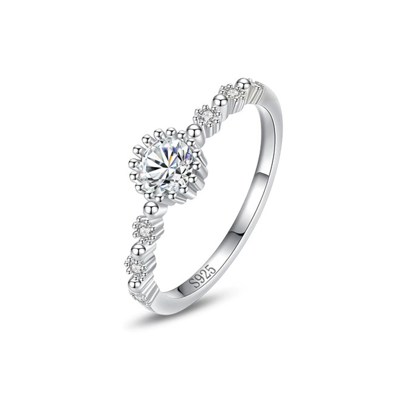 Add refined simplicity to your jewelry selection with this 925 sterling silver round CZ ring. Featuring a bright center stone and delicate bead detailing, it delivers modern elegance in a lightweight, comfortable design. Crafted with rhodium-plated sterling silver for enhanced durability and shine, this ring is a perfect addition for retailers focused on minimalist and fine everyday jewelry.