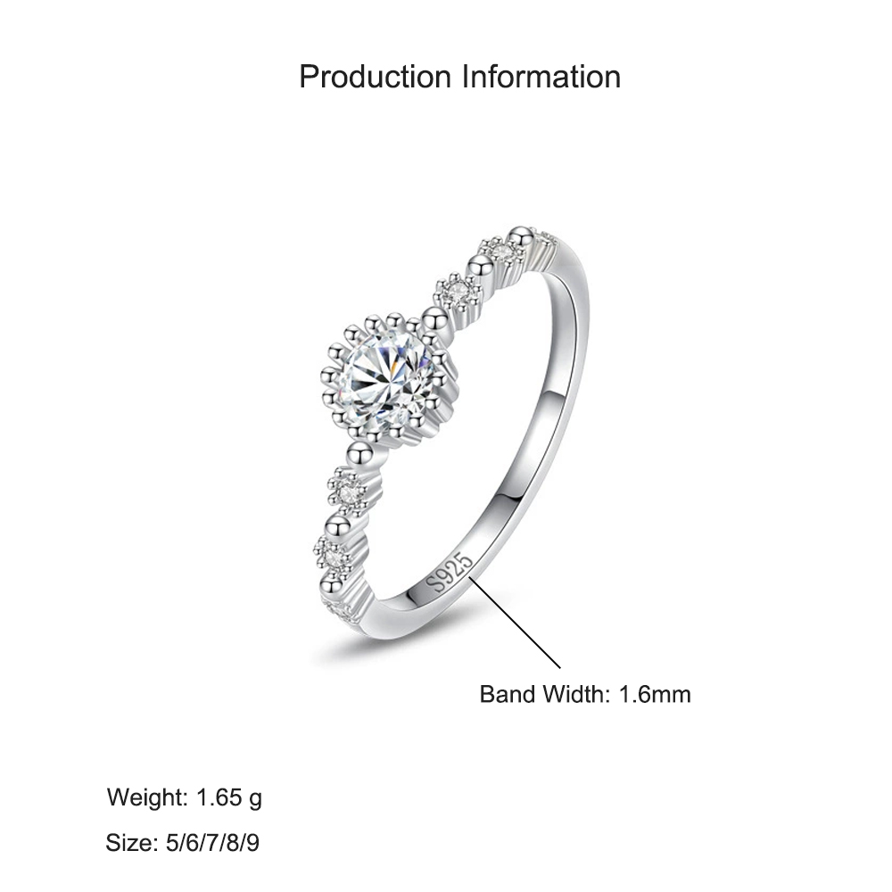 Delicate and refined, this 925 sterling silver round CZ ring brings a touch of effortless elegance to your everyday look. The center round-cut cubic zirconia sparkles with exceptional brilliance, surrounded by tiny bead-set accents that add dimension and texture. Crafted from genuine sterling silver with a rhodium-plated finish, this ring offers long-lasting shine, hypoallergenic comfort, and timeless charm. Perfect for daily wear, stacking, or as a promise ring.