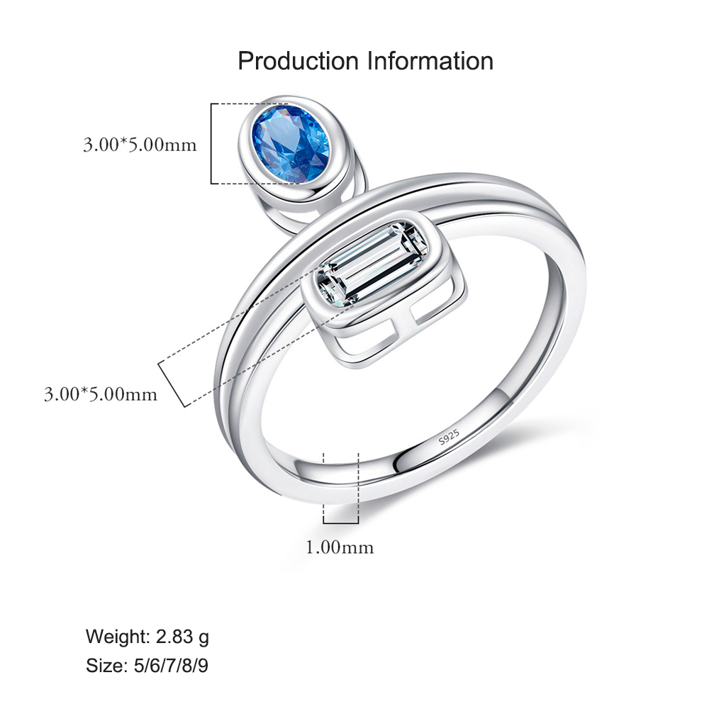 Crafted from 925 sterling silver, this open ring features a sleek double-band silhouette with a baguette-cut and aquamarine blue CZ stone. Its minimalist geometric design blends elegance and individuality—ideal for everyday styling, workwear, or adding a chic twist to your look.
