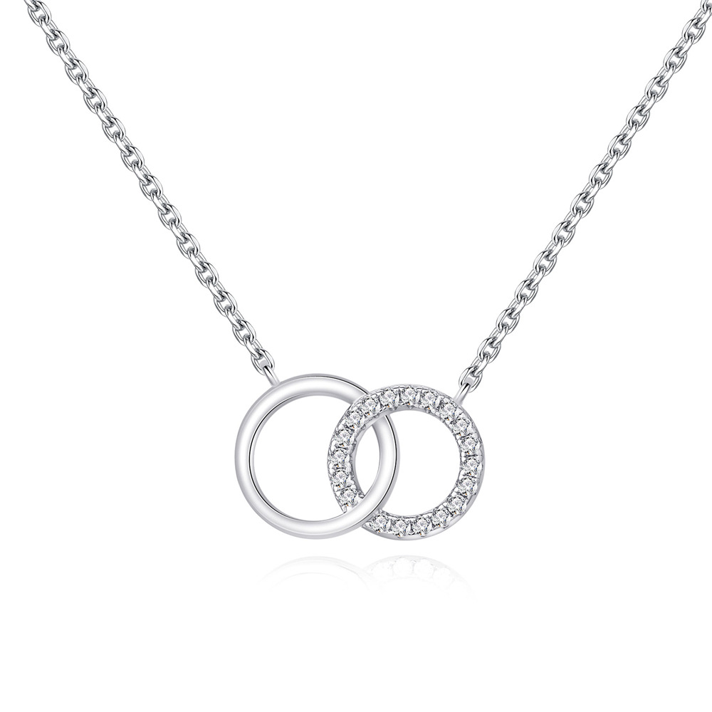 Add a symbolic best-seller to your jewelry collection with this 925 sterling silver double circle pendant necklace. Featuring polished and CZ-encrusted interlocking rings, this design is timeless and appeals to customers worldwide for its meaning of love and unity. Crafted to meet European and American standards, it is durable, elegant, and offered at competitive wholesale prices. Perfect for resellers, boutiques, and online shops seeking versatile sterling silver jewelry.