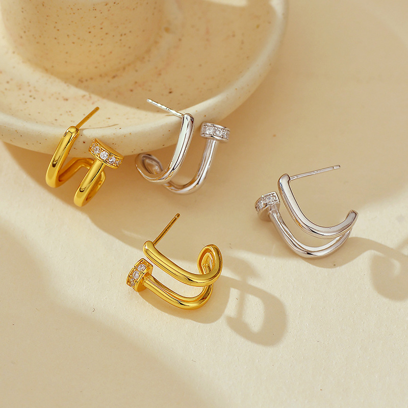 Source a trending, high-impact inventory item with our 925 Sterling Silver Double-Layer Pave CZ Geometric Studs. This design is highly marketable, capitalizing on the popularity of bold, layered and geometric jewelry with a "designer feel" . The combination of polished metal and pave cubic zirconia ensures high perceived value and strong aesthetic appeal. The layered bar/pin structure offers a unique point of differentiation in the stud market. Crafted from authentic S925 sterling silver, this piece offers reliable quality and strong retail margins. Available for bulk purchase at competitive wholesale pricing.