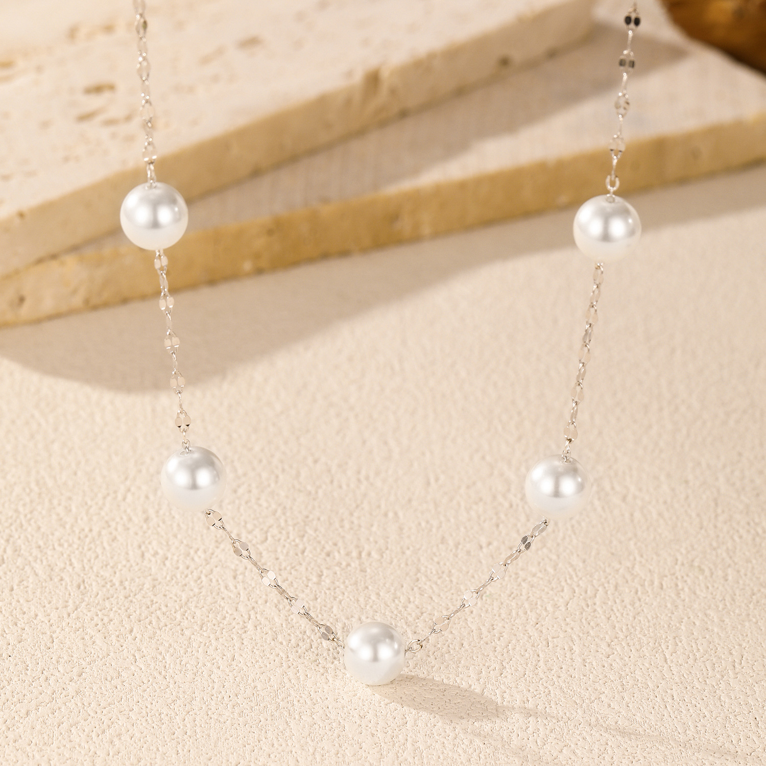 This 925 sterling silver necklace features luminous crystal pearls arranged delicately along a fine chain, exuding French chic elegance. Designed as a versatile collarbone chain, it adds sophistication to both everyday outfits and formal occasions.