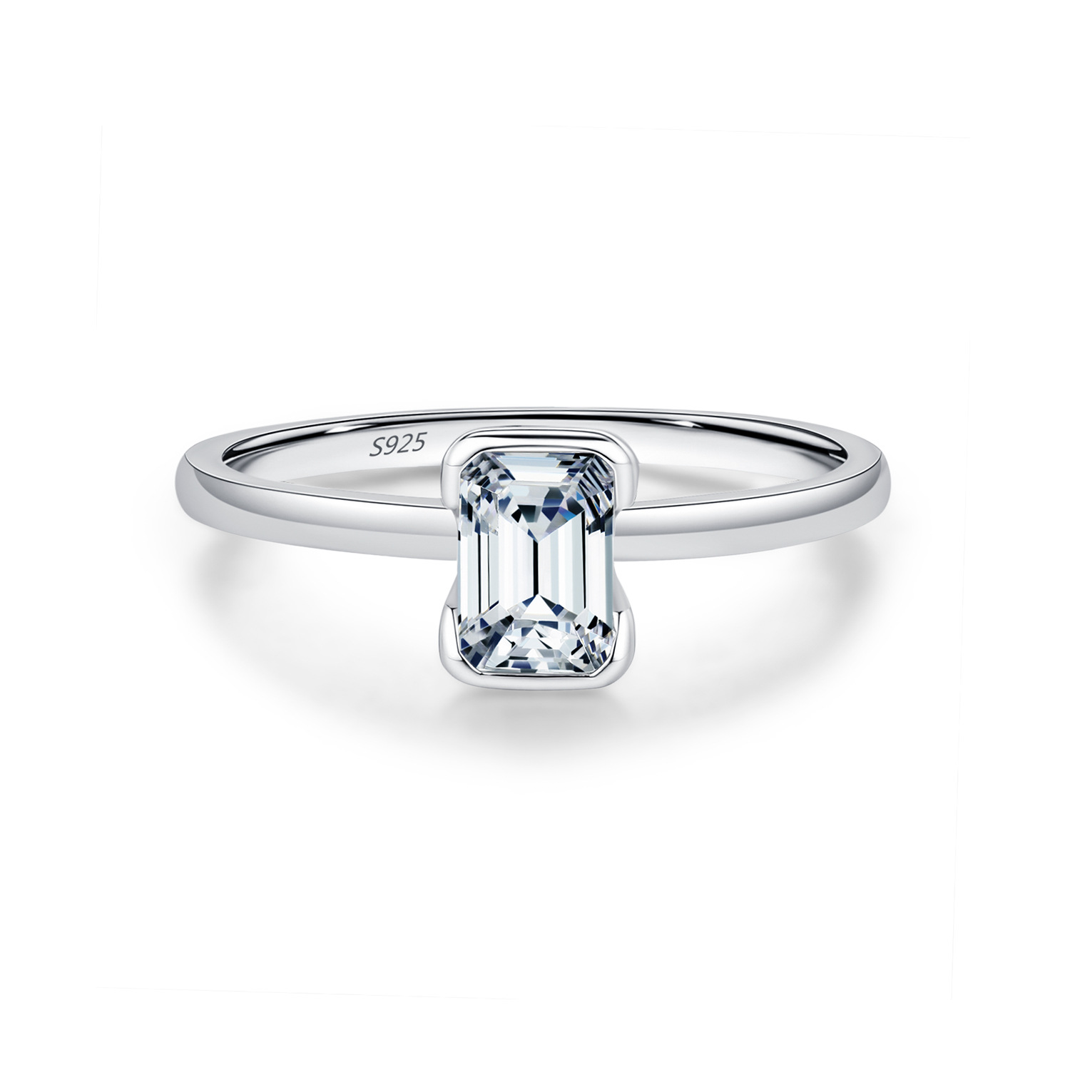 Refresh your solitaire category with the refined simplicity of our Wholesale 925 Sterling Silver Emerald Cut Solitaire Ring. While round stones are traditional, the "Emerald Cut" is rapidly growing in popularity among customers seeking a vintage yet modern aesthetic. This SKU distinguishes itself with a unique semi-bezel setting that offers better durability and a sleeker look than traditional prongs. Manufactured from solid S925 sterling silver and featuring high-grade Moissanite, this ring offers the look of high-end bridal jewelry at an accessible price point.