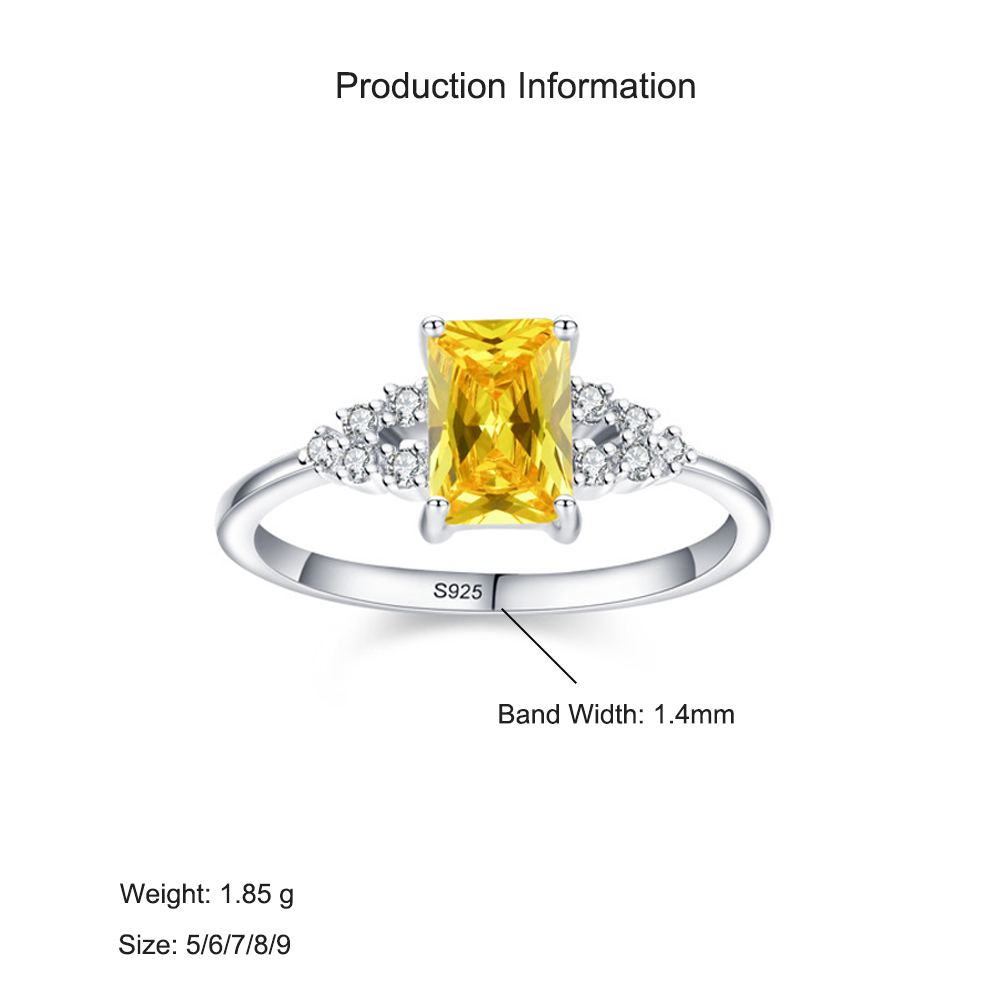 Bright, bold, and full of charm, this 925 sterling silver ring showcases a striking yellow emerald-cut cubic zirconia that radiates sunshine-like brilliance. Surrounded by sparkling side stones, the design captures both modern sophistication and timeless beauty. Crafted from genuine sterling silver and plated with rhodium for extra shine and durability, this piece is perfect for adding a pop of color to any outfit or celebrating joyful moments.