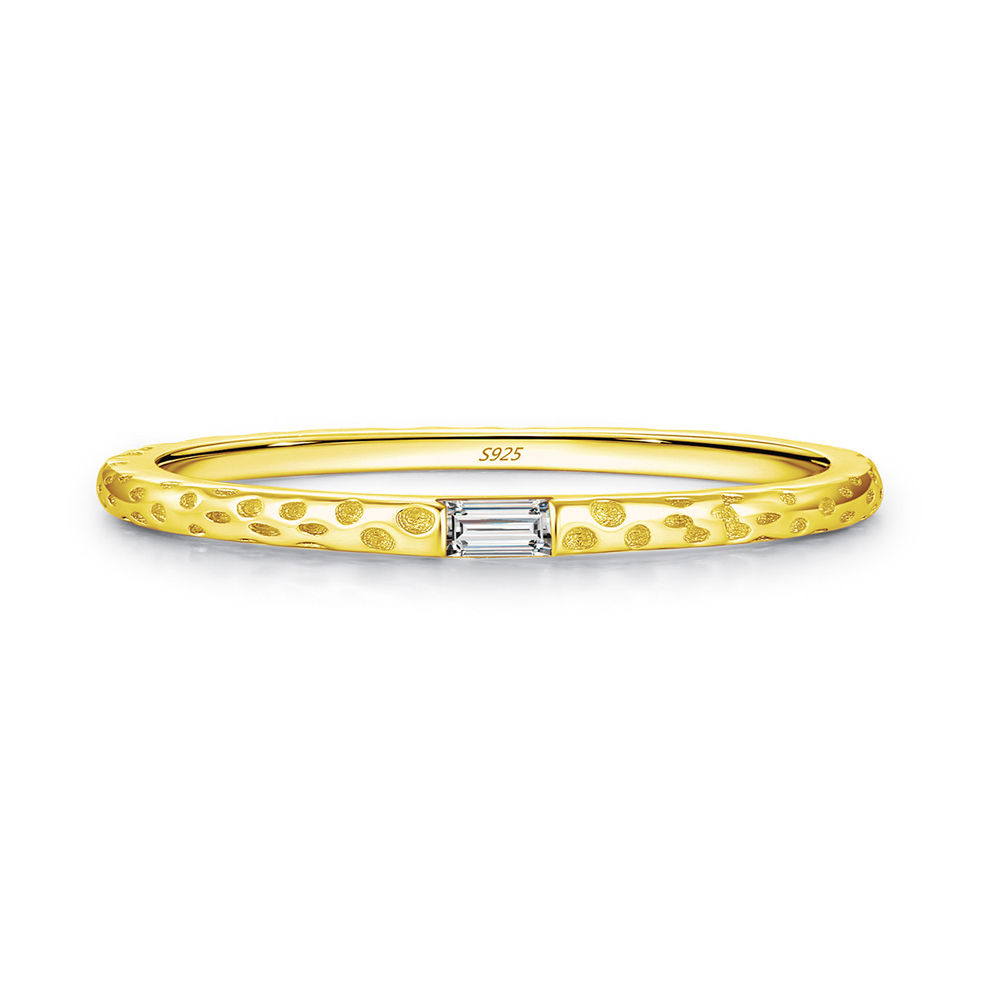 This 925 sterling silver solitaire ring combines modern minimalism with a unique foil-textured design. Featuring a sleek geometric band and a sparkling baguette-cut cubic zirconia centerpiece, it is available in both silver and gold finishes. A versatile ring that blends Japanese-Korean fashion trends with timeless elegance, perfect for stacking, everyday wear, or as a chic statement accessory.