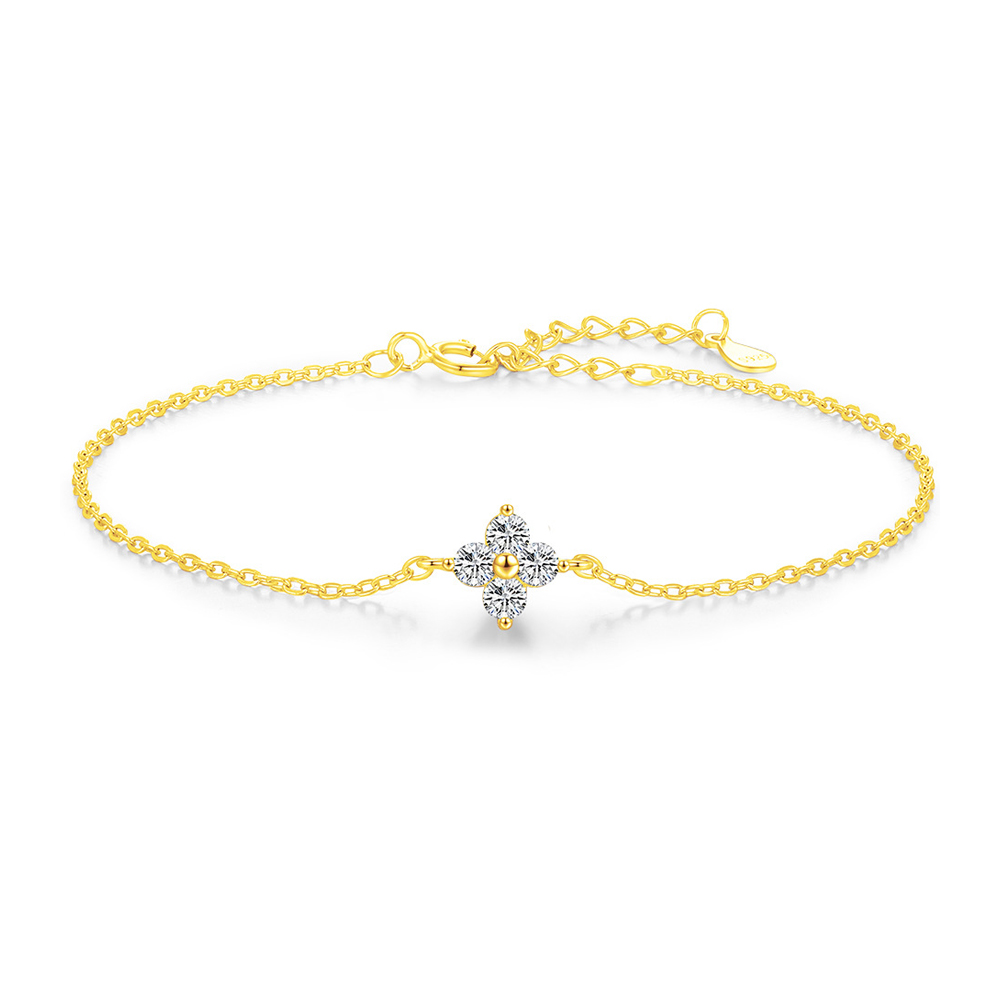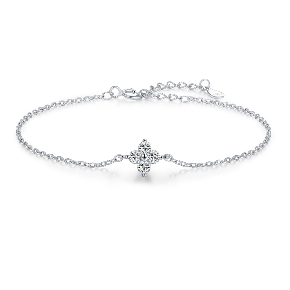 925 Sterling Silver Four-Leaf Clover CZ Bracelet 100100195