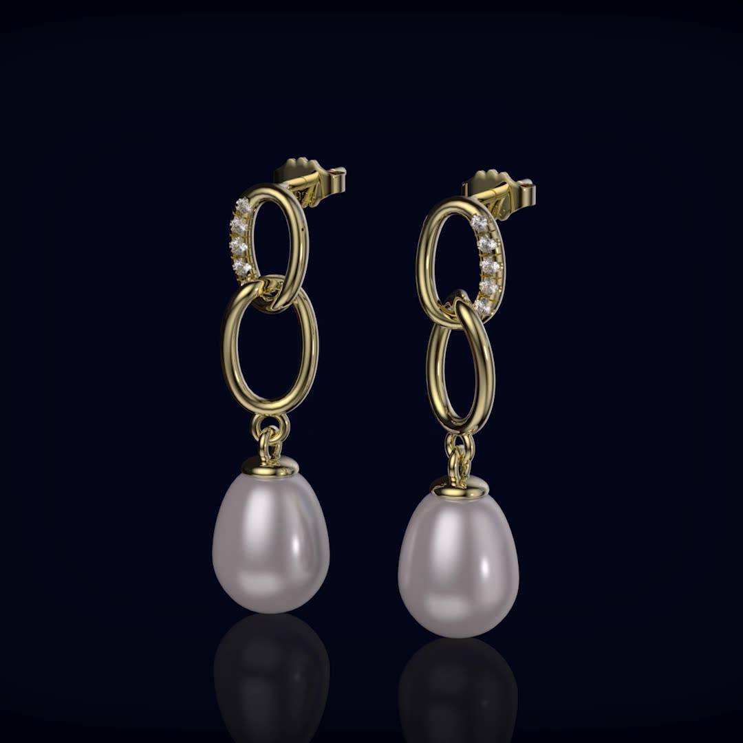 925 Sterling Silver Fresh Water Pearl Chain Stud Earring 40500042