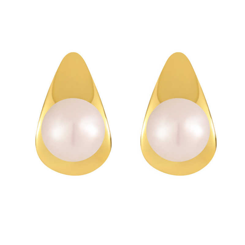 925 Sterling Silver Fresh Water Pearl Geometric Stud Earring 40500069