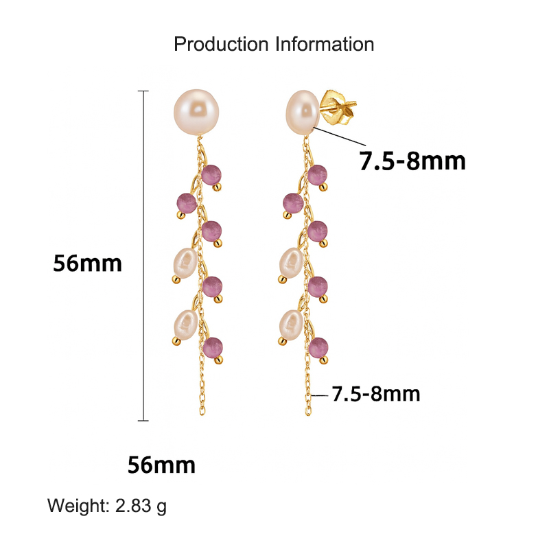 Dimension: 56mm(height), fresh water pearl 7.5-8mm