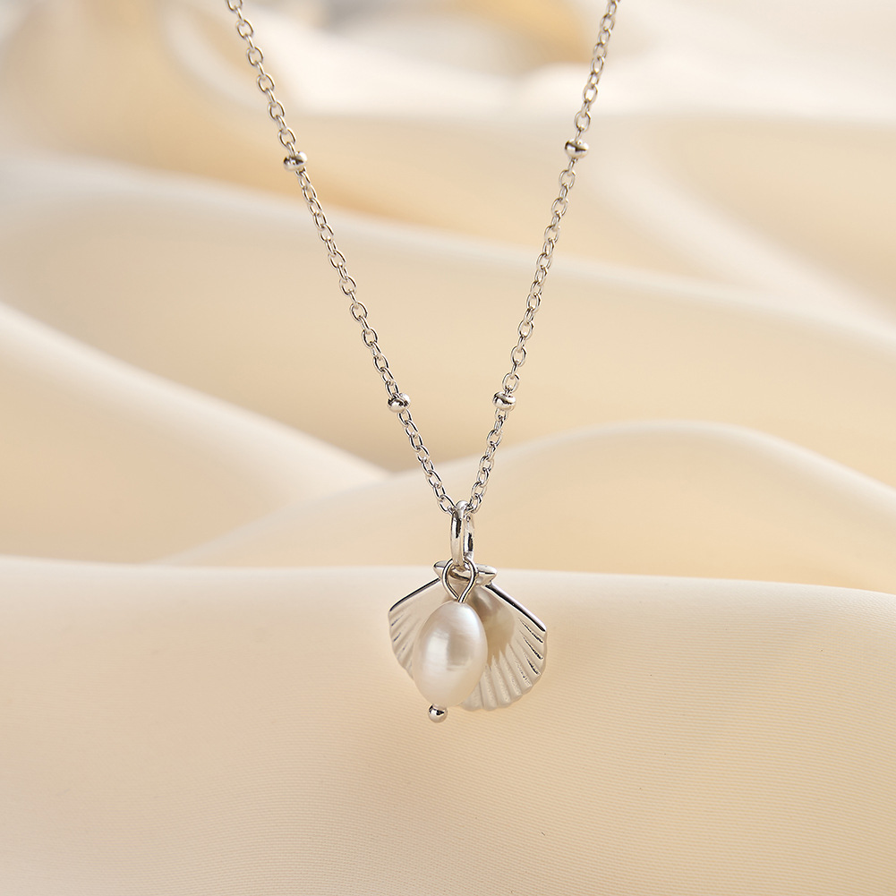 925 Sterling Silver Fresh Water Pearl Shell Necklace 80200416