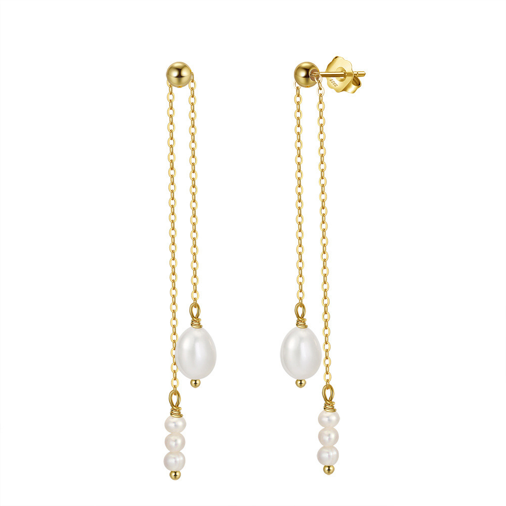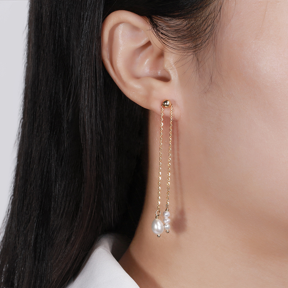 925 Sterling Silver Fresh Water Pearl Tassel Stud Earring 40500029