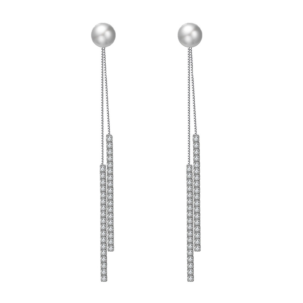 925 Sterling Silver Fresh Water Pearl Zirconia Tassel Stud Earring 40500046 - image1925 Sterling Silver Fresh Water Pearl Zirconia Tassel Stud Earring 40500046 - image2