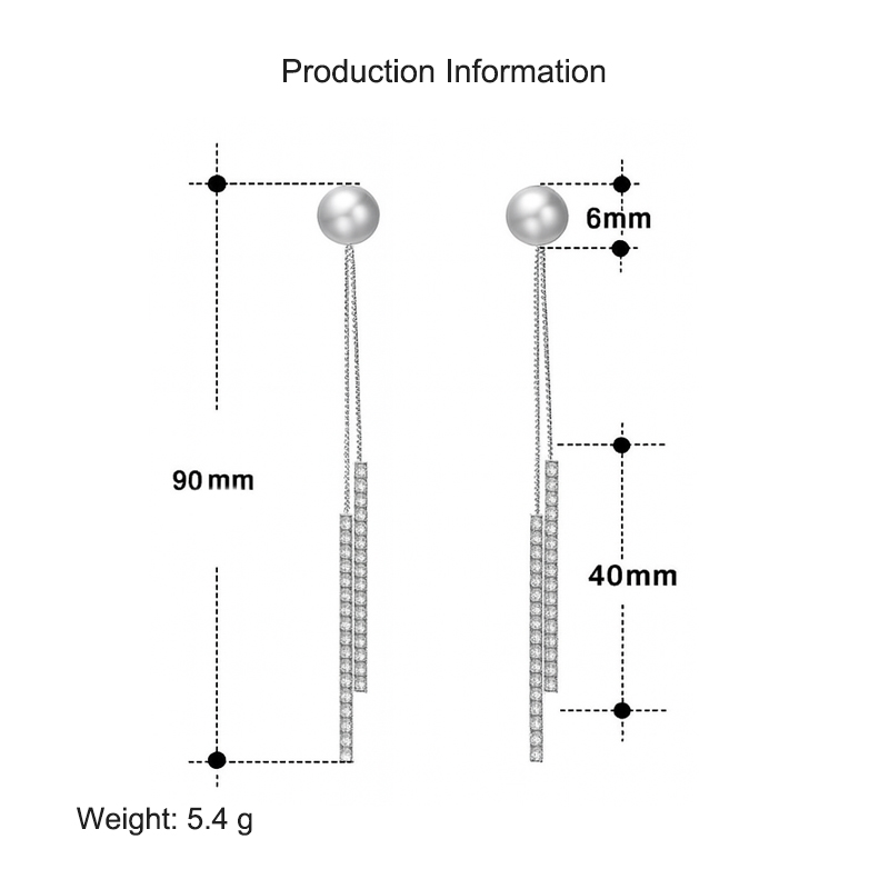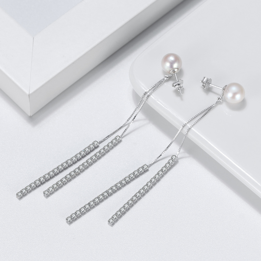 925 Sterling Silver Fresh Water Pearl Zirconia Tassel Stud Earring 40500046