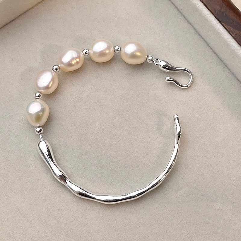Elevate your look with this 925 sterling silver half-bangle bracelet, featuring natural freshwater baroque pearls and a unique irregular design. Perfect for daily wear or special occasions, this bracelet adds a touch of elegance and modern minimalism to any outfit.