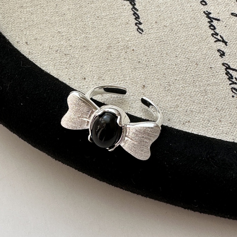 Source a trending, unique item with our 925 Sterling Silver Frosted Bow Black Agate Ring. This design features a distinctive frosted/brushed bowknot texture that creates a captivating contrast with the central, polished black agate gemstone. Crafted from authentic S925 sterling silver, this piece offers high-quality construction and a visually appealing aesthetic that stands out in the market. The adjustable open design minimizes inventory sizing needs and broadens market appeal. This ring is ideal for retailers seeking modern, artistic, and gemstone-accented silver jewelry. Available for bulk purchase at competitive wholesale prices.