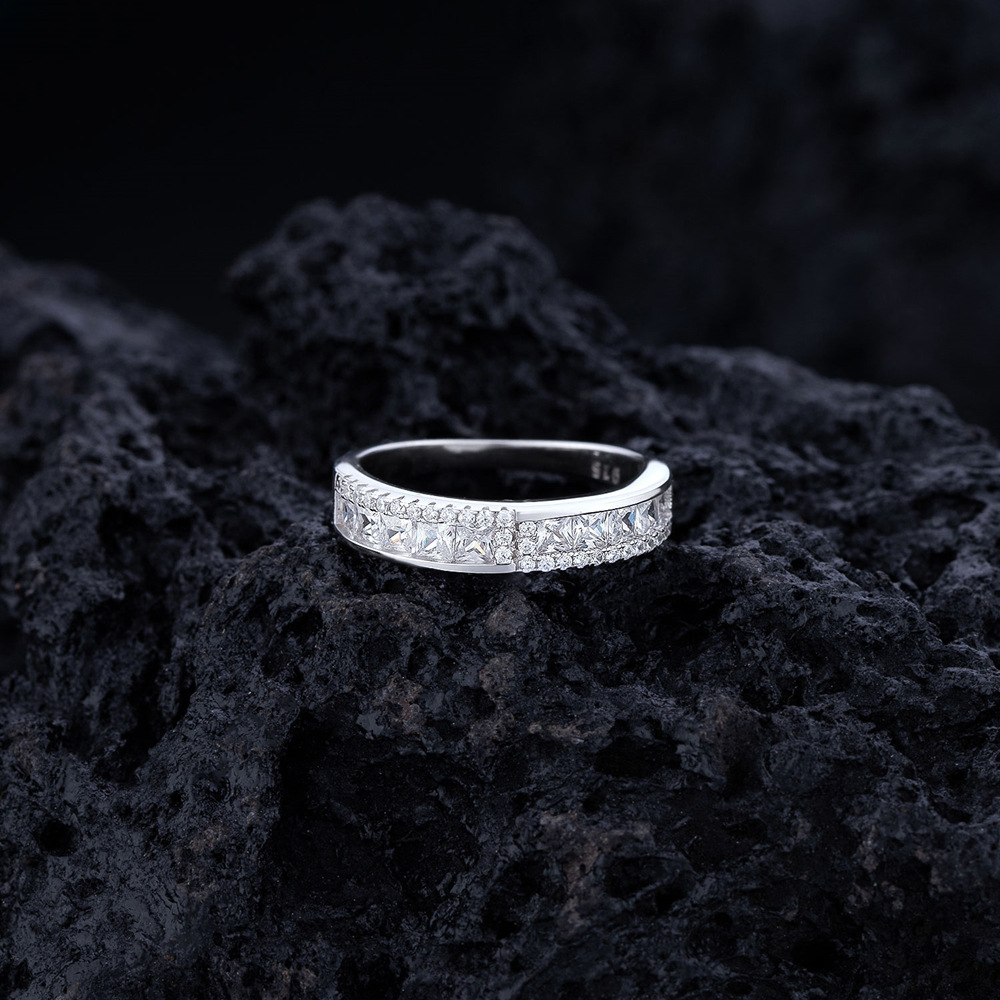 Crafted from 925 sterling silver and set with dazzling 5A cubic zirconia in a full pavé design, this ring exudes timeless elegance. Ideal for weddings, parties, or daily sophistication, it adds a refined sparkle whether worn solo or layered. A must-have for modern minimalists.