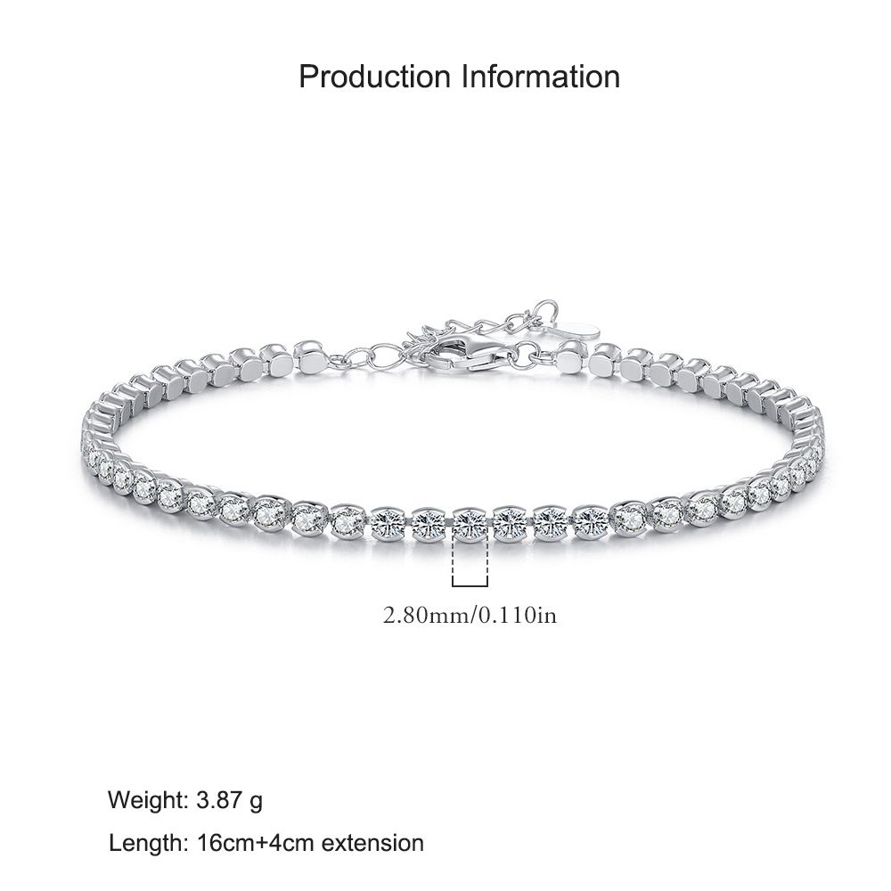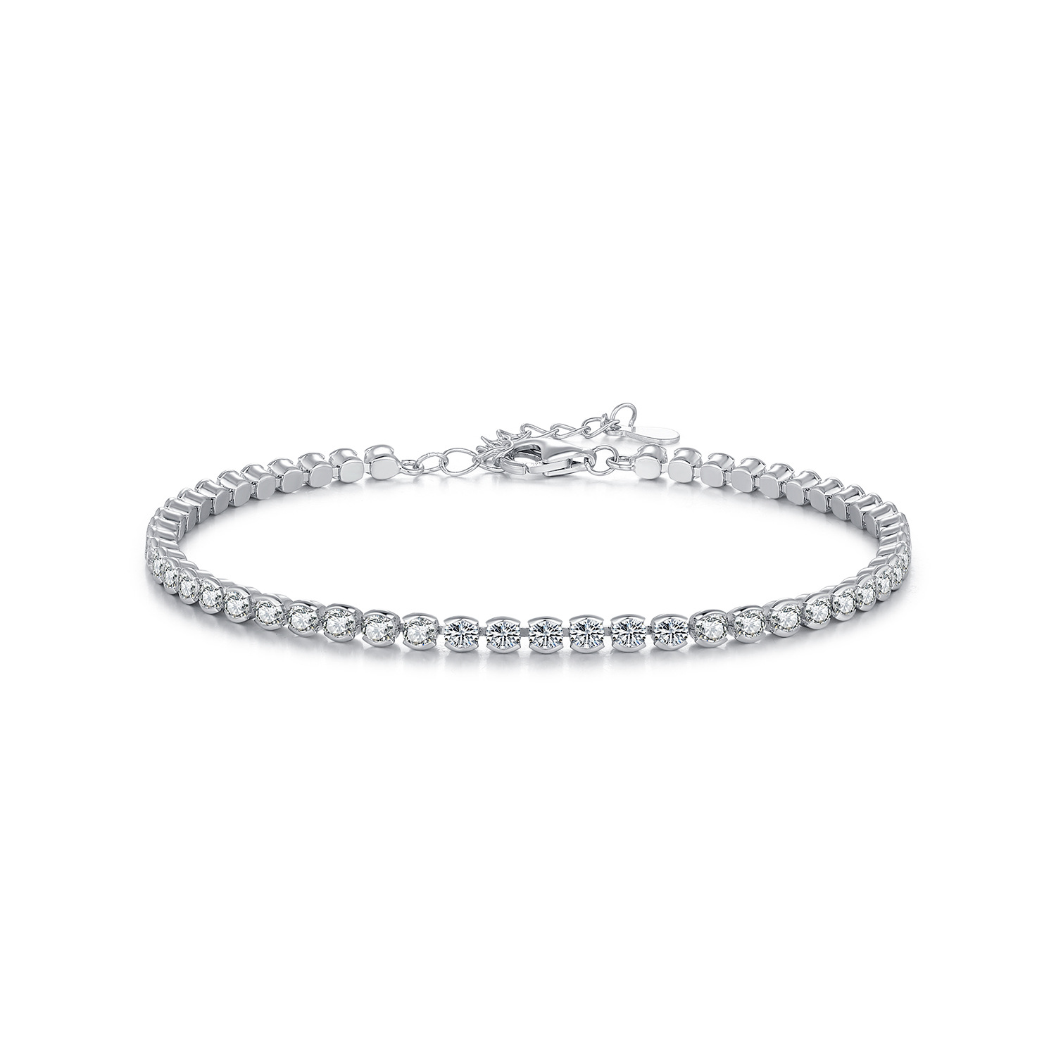 Shine with timeless elegance wearing this 925 sterling silver tennis bracelet, featuring a full row of high-quality round-cut cubic zirconia stones that deliver maximum brilliance. Designed for a refined yet modern look, this bracelet blends classic luxury with everyday versatility. Its sleek profile and secure clasp make it the perfect choice for both special occasions and daily wear. An ideal piece to elevate your jewelry collection or gift to someone special.
