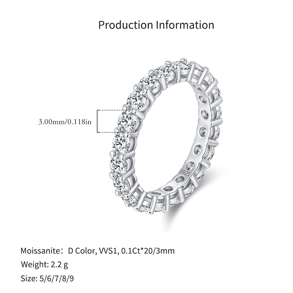 925 Sterling Silver Full Eternity Moissanite Band Ring 110200047