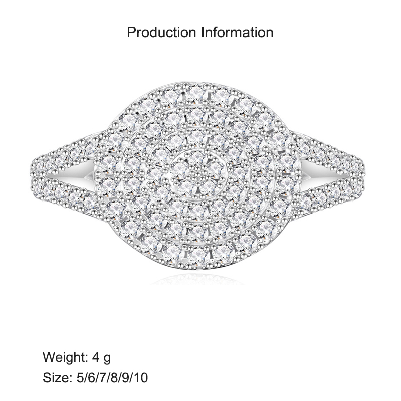 Radiating elegance, this 925 sterling silver ring features a bold circular design fully paved with high-quality CZ stones. The layered micro-inlay gives a dazzling 3D effect, ideal for parties, evening wear, or luxurious everyday style. A statement of glamour and craftsmanship.