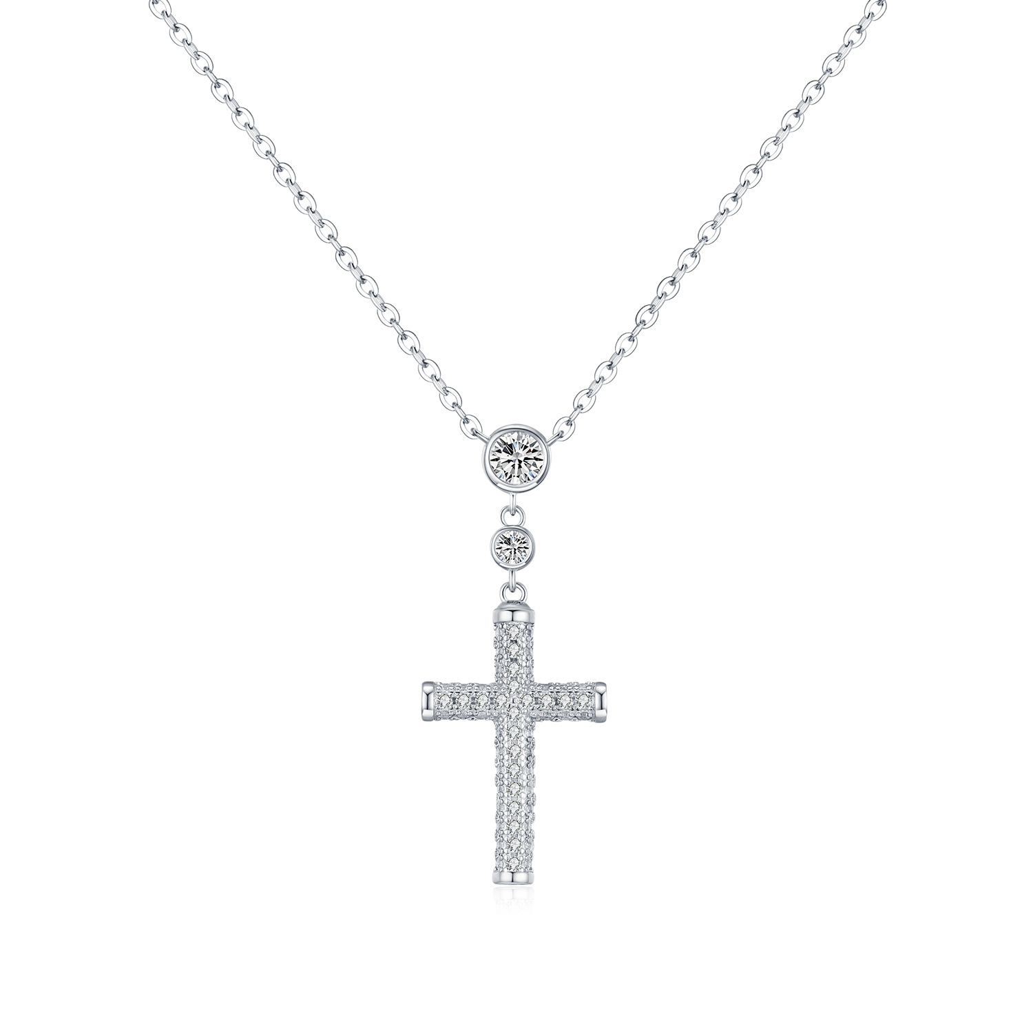 925 Sterling Silver Full Pave Zircon Cross Necklace 80200499