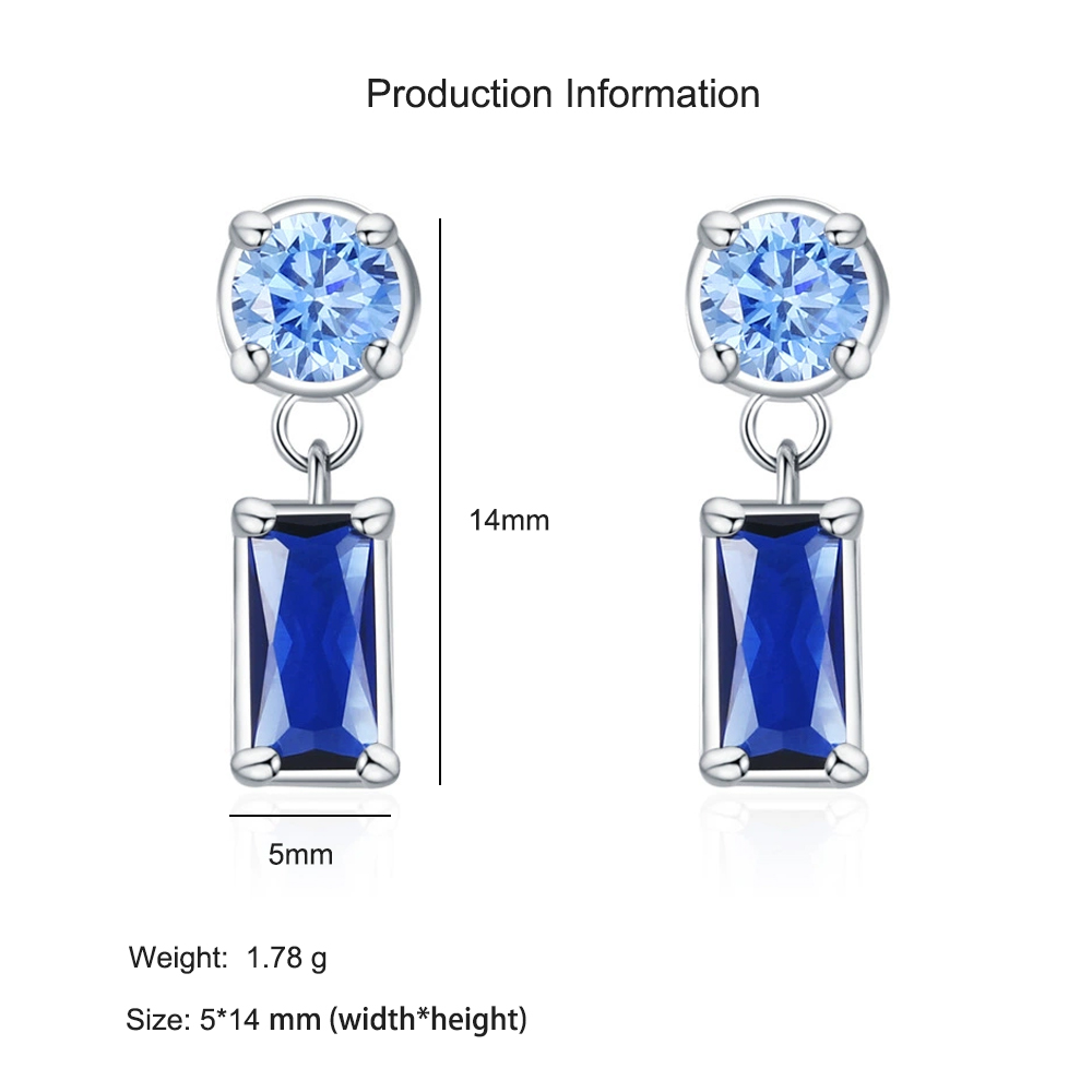 925 Sterling Silver Geometric Blue Zircon Stud Earring 40200698 - image1925 Sterling Silver Geometric Blue Zircon Stud Earring 40200698 - image2