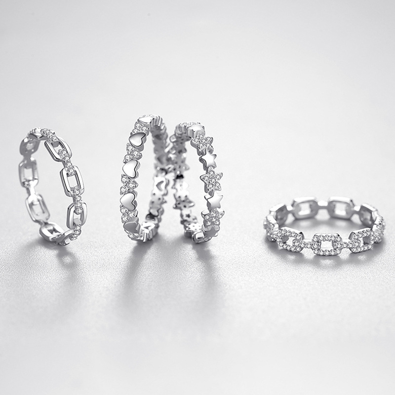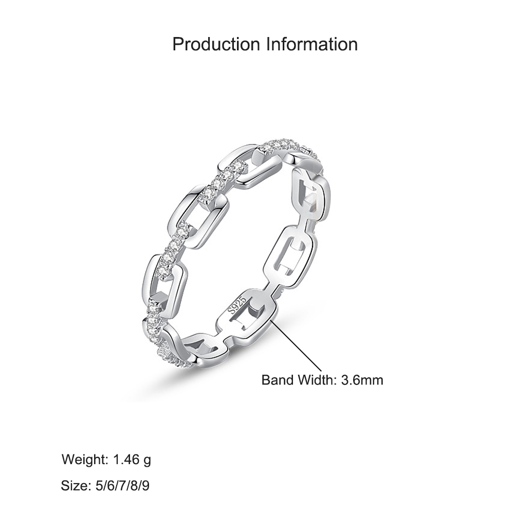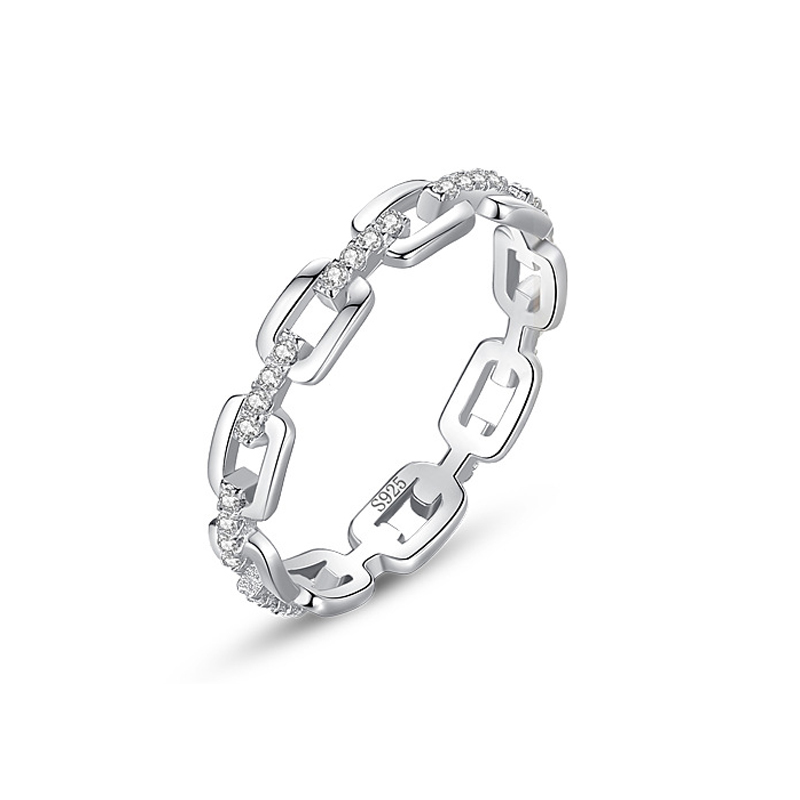 925 Sterling Silver Geometric Chain Link CZ Ring 70100538
