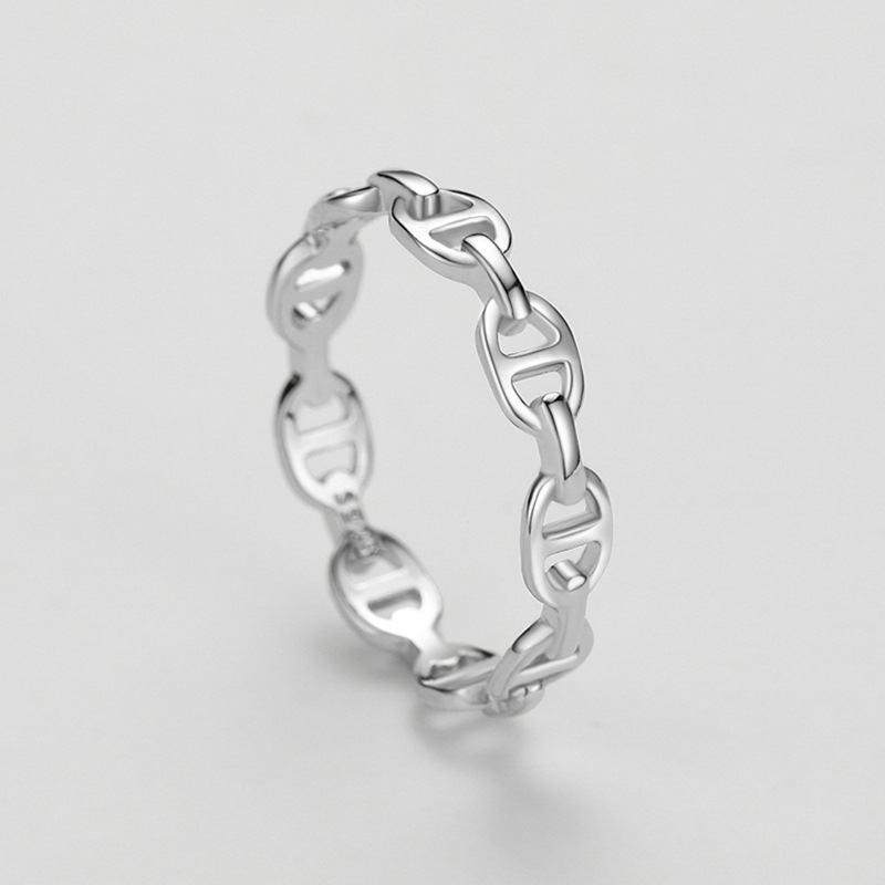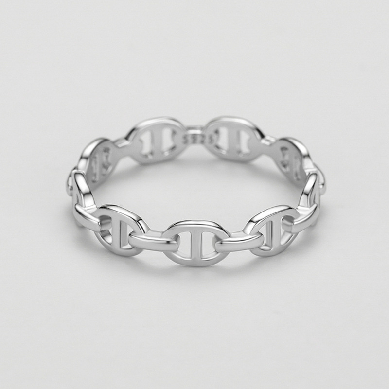 Upgrade your jewelry collection with this sleek 925 sterling silver geometric chain ring. Featuring a modern linked design and mirror-polished finish, it captures the essence of understated luxury. Made from premium sterling silver with rhodium plating, this ring offers long-lasting shine and exceptional craftsmanship. A versatile addition for retailers seeking contemporary minimalist jewelry that appeals to both men and women.