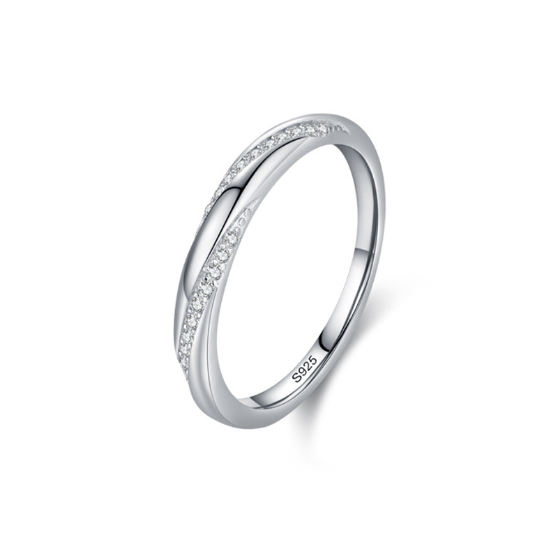 925 Sterling Silver Geometric Crossover Zircon Ring 70100562