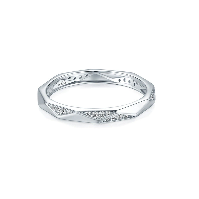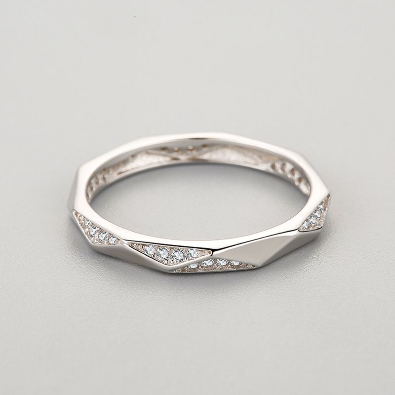 This modern 925 sterling silver ring combines sleek geometry with refined sparkle. The faceted polygonal band features delicate pavé-set cubic zirconia accents that shimmer with every movement. Crafted from high-quality sterling silver and finished with a durable rhodium plating, the ring offers a mirror-like polish and long-lasting brilliance. Its unique multi-sided silhouette makes it a standout piece for those who appreciate minimalist luxury and architectural design.