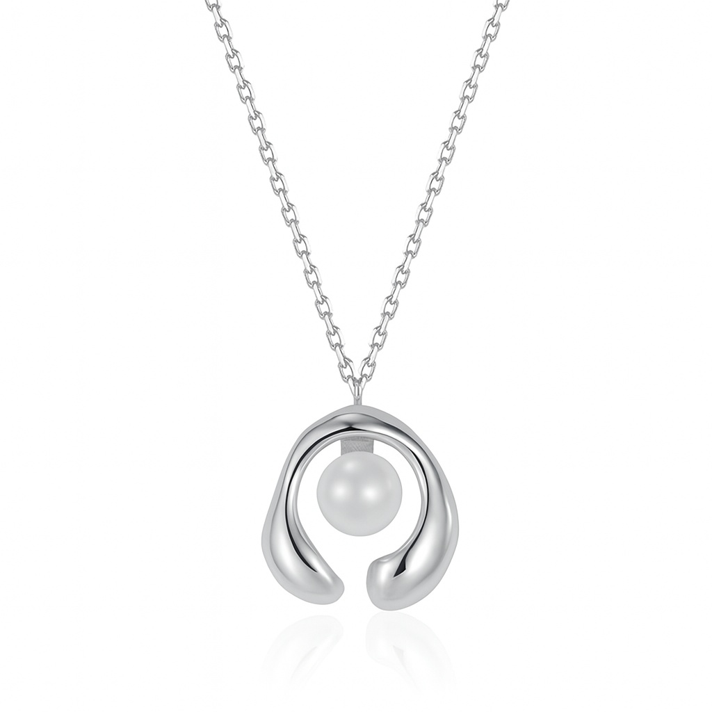 925 Sterling Silver Geometric Fresh Water Pearl Necklace 80200432