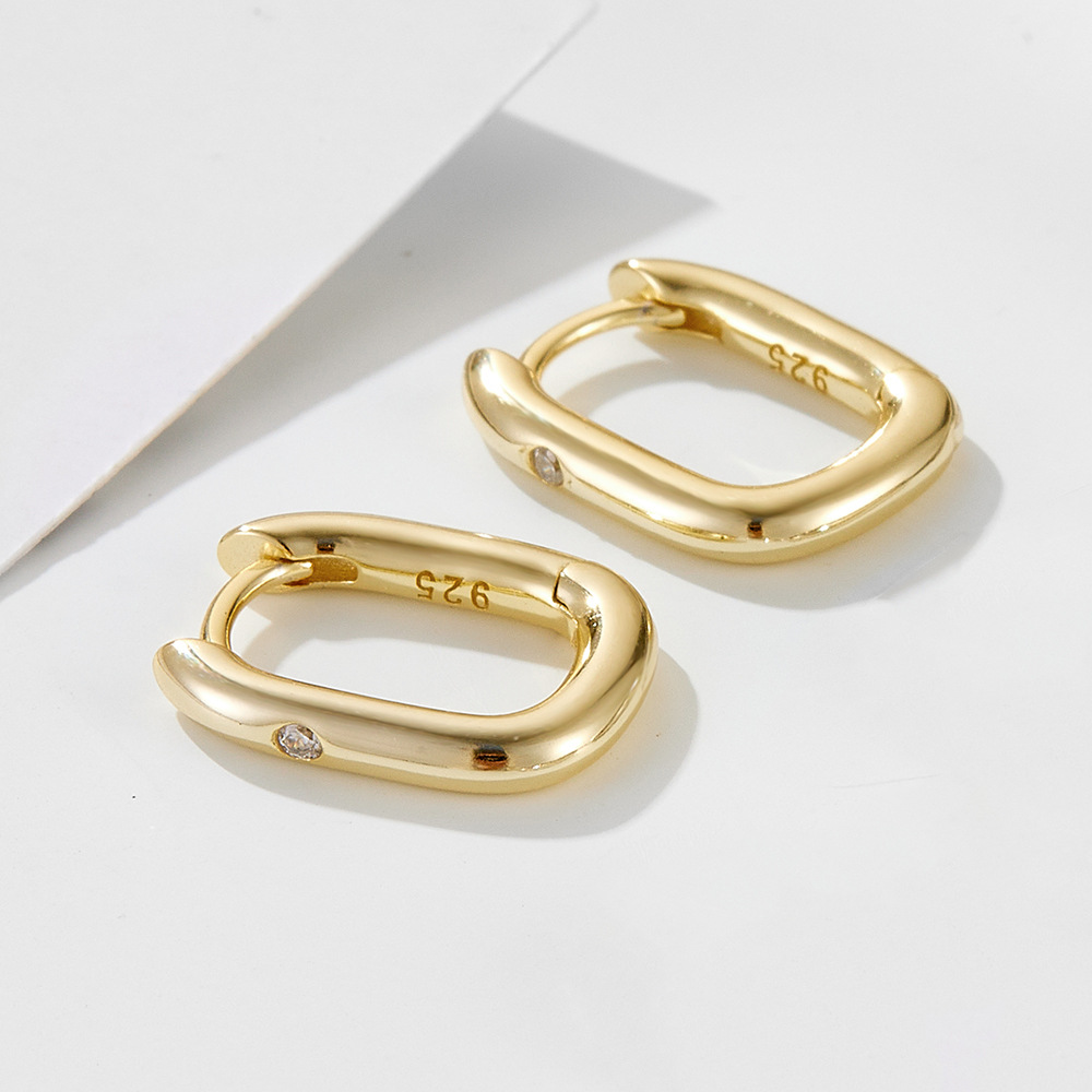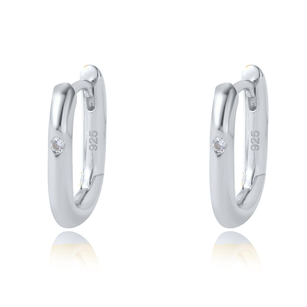 Capture the "Modern Minimalist" market with our Wholesale 925 Sterling Silver Geometric Solitaire CZ U-Hoop Earrings. The "U-Shape" or "Oval Link" silhouette is a growing trend, offering a clean, geometric aesthetic that fits the popular "Cold Style" fashion narrative. This SKU features a high-polish finish with a solitary, flush-set Cubic Zirconia, creating a design that is both durable (snag-free) and elegant. Manufactured from solid S925 sterling silver, these huggies are a high-turnover item ideal for daily wear collections.