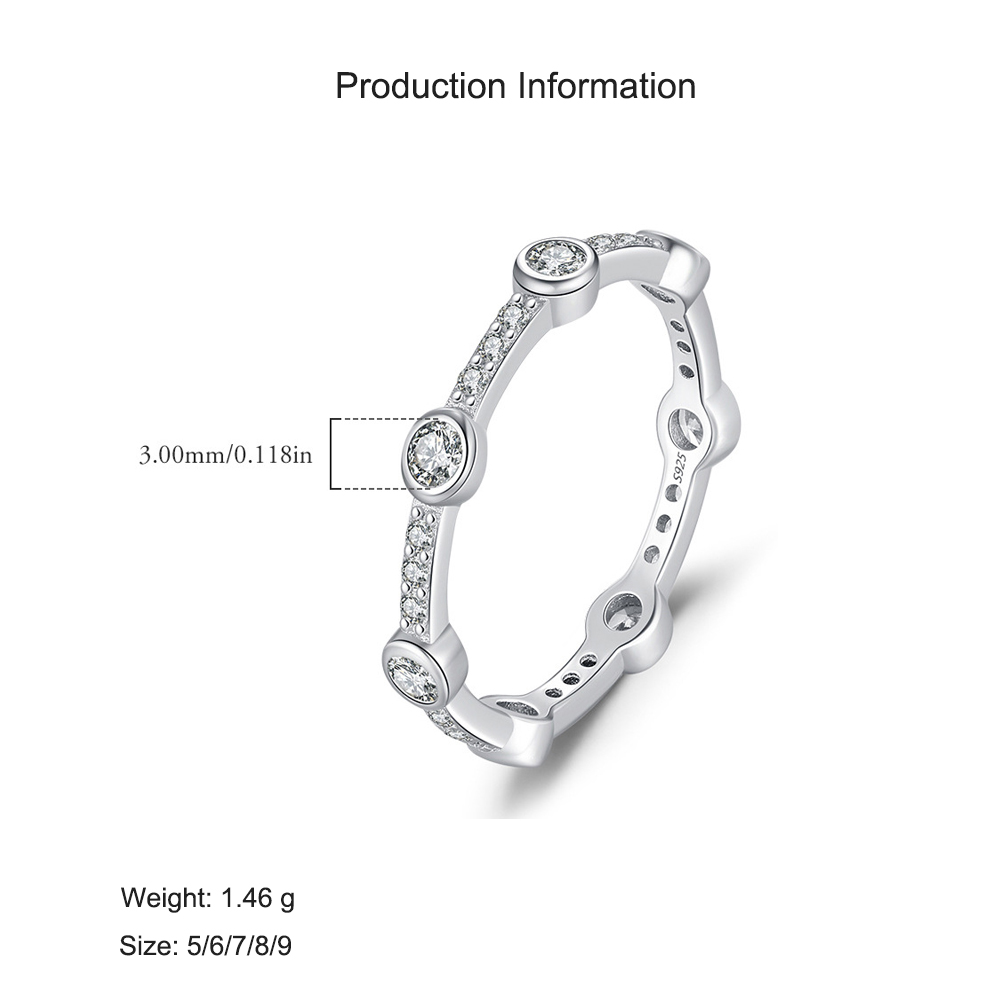 This refined 925 sterling silver ring features a sleek geometric band design accented with bezel-set round zircons and pavé-set sparkling stones. Its modern yet elegant style makes it a versatile accessory, perfect for both professional business wear and fashionable everyday looks. With its sophisticated sparkle and timeless charm, this silver zircon band can be worn alone or stacked with other rings for a layered effect. A chic jewelry piece that balances minimalism with luxury.