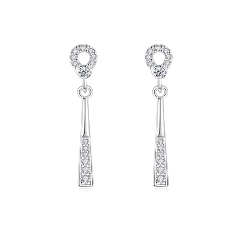 925 Sterling Silver Geometric Zircon Drop Stud Earring 40200719