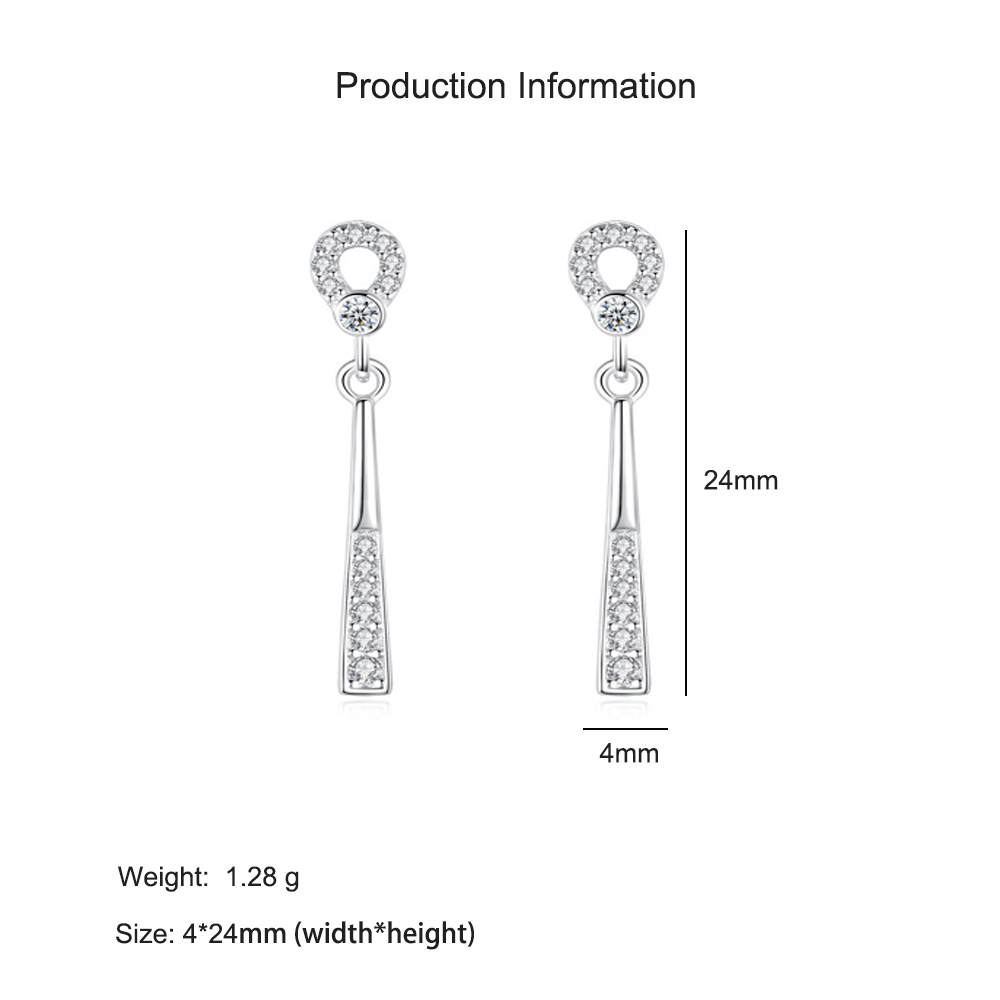 Elevate your style with these elegant 925 sterling silver geometric dangle earrings. The sleek tapered bar design is accented with brilliant micro-paved zircons that catch the light with every movement. Combining minimalism with sophistication, these earrings are perfect for both everyday wear and evening elegance. Lightweight and refined, they add just the right amount of sparkle to complete any modern outfit.