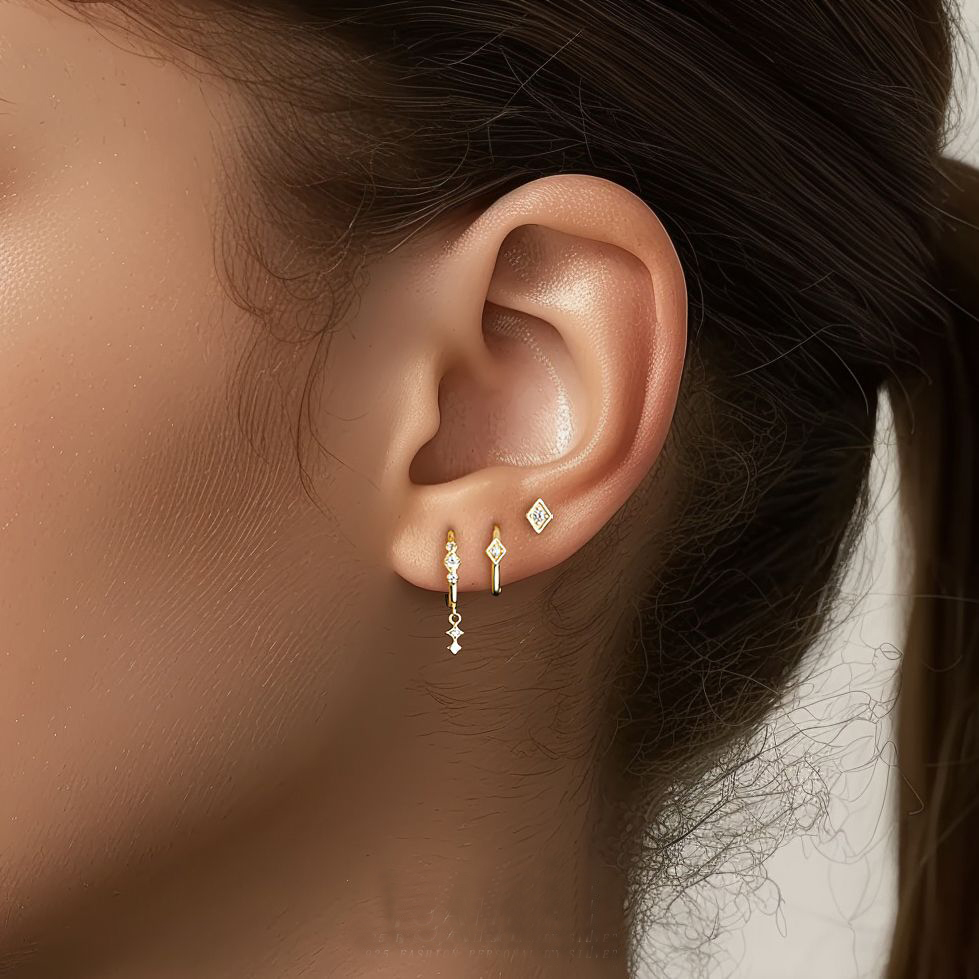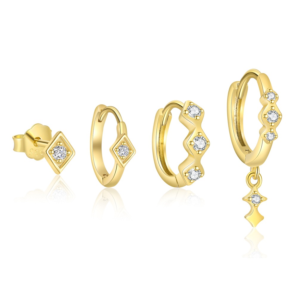 925 Sterling Silver Geometric Zirconia Earring Set 140100033
