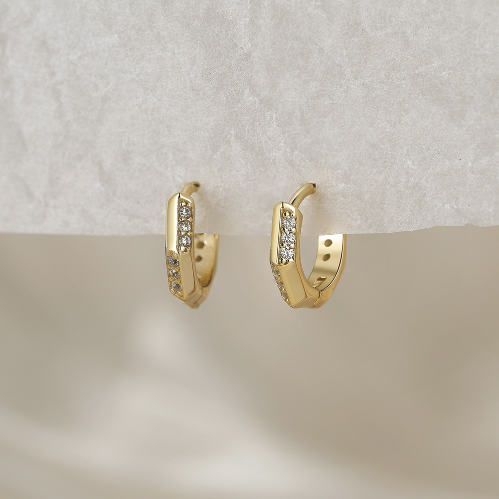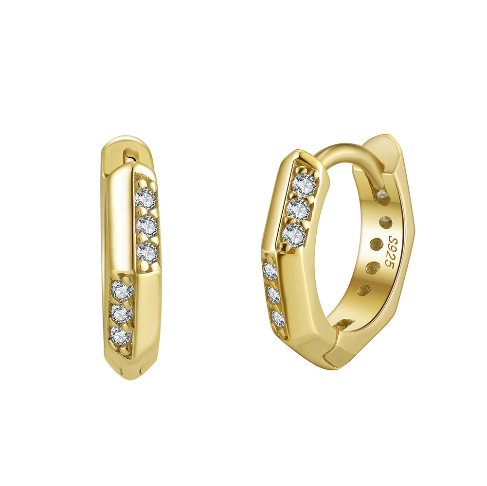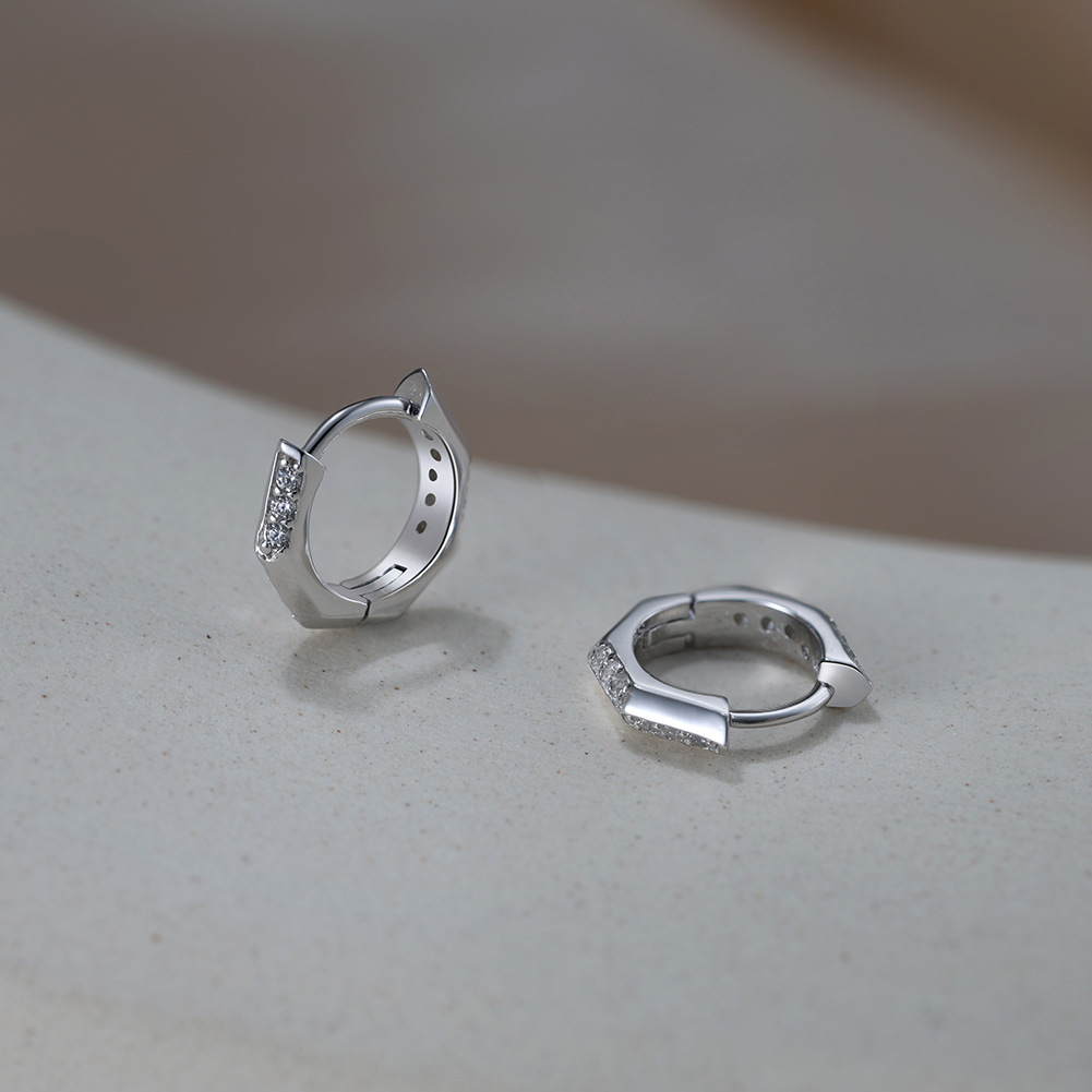 925 Sterling Silver Geometric Zirconia Hoop Earring 60200226