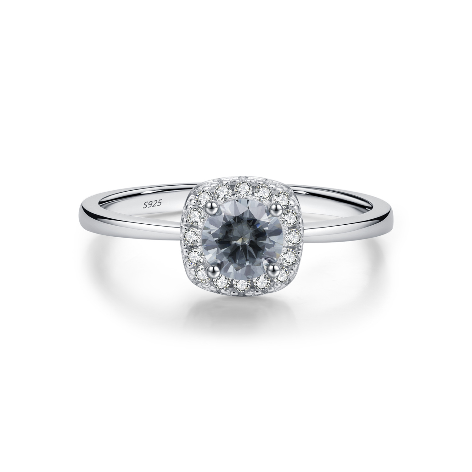 925 Sterling Silver Grey Moissanite Halo Ring 110200018