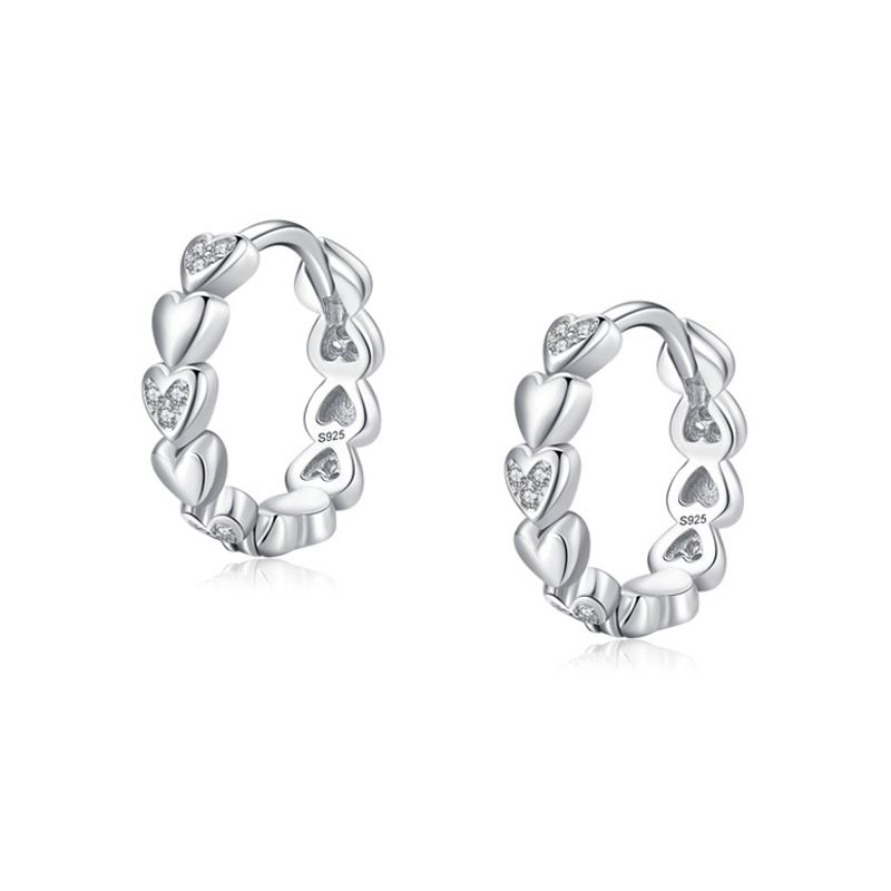 These 925 sterling silver heart hoop earrings are a best-selling design that blends romance and modern elegance. Each hoop is detailed with micro-pavé cubic zirconia, ensuring sparkling appeal and consistent quality. Crafted with durable rhodium plating for long-lasting brilliance, these earrings are ideal for jewelry retailers and online sellers seeking timeless, giftable designs that appeal to a wide audience.